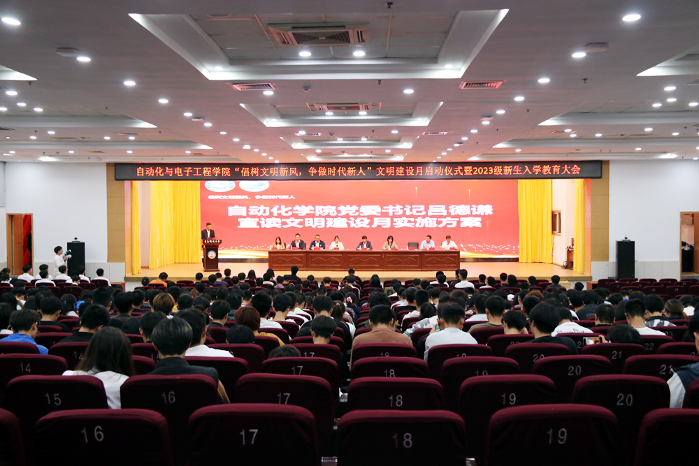10月19日,自动化学院“倡树文明新风,争做时代新人”文明建设月启动仪式暨2023级新生入学教育大会在崂山校区第二报告厅举行。学校党委常委、副校长兼自动化学院院长李少远,青岛特锐德电气股份有限公司人力中心总监韩增雪、人力资源部部长张莹出席大会。