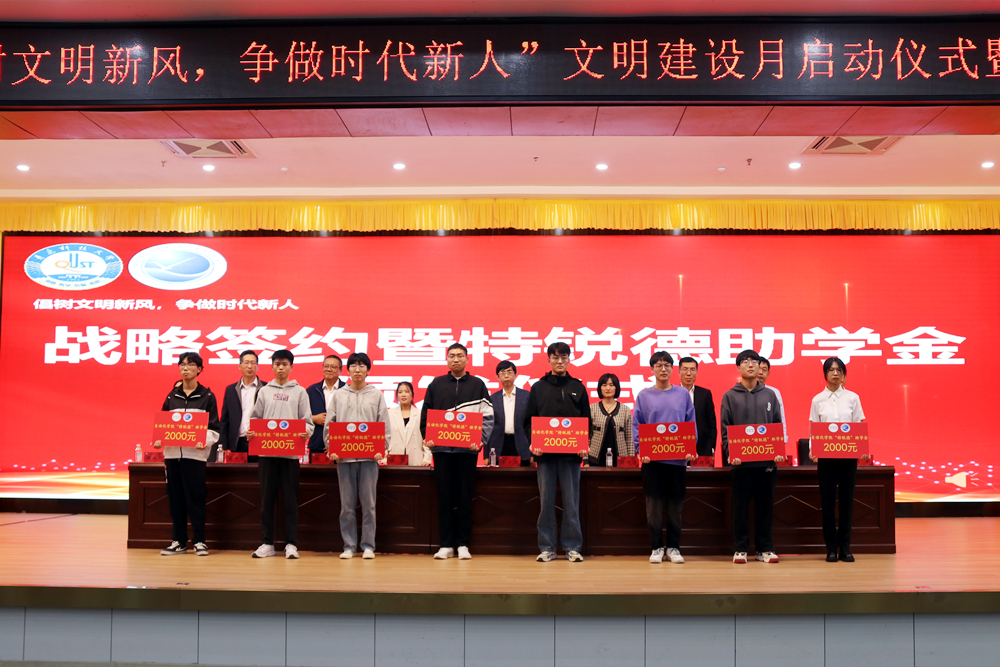 仪式上,自动化学院党委书记吕德谦宣读了《伟德国际1949始于英国自动化与电子工程学院文明建设月实施方案》。韩增雪介绍了青岛特锐德电气股份有限公司的基本情况,回顾了公司成立以来与学校及学院的合作情况。自动化学院副院长赵彤与韩增雪签署特锐德公司捐赠协议。根据捐赠协议,特锐德公司每年出资四万元人民币,在自动化学院设立特锐德助学金、冠名学院体育联赛、职业生涯规划大赛等。教师代表樊春玲、新生代表师宜昂分别作主题发言。学生会主席团成员李雨泽宣读了《自动化与电子工程学院校园文明建设倡议书》,优秀学生代表董金宇、王鑫洋、邱萍分别作学习经验交流。与会领导嘉宾共同为获得首届“特锐德”助学金的学生颁发助学金,为学院校园文明宣传大使颁发聘书。