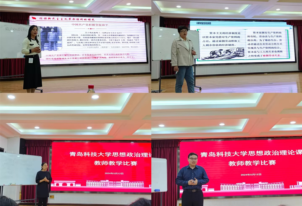 比赛特邀济南大学马克思主义学院原院长、省学校思政课分教指委主任委员文洪朝教授担任组长,山东大学马克思主义学院副院长、省学校思政课分教指委委员张路园教授,山东师范大学马克思主义学院副院长、省学校思政课分教指委委员吴春雷教授,山东科技大学马克思主义学院副院长、省学校思政课分教指委委员常春教授,省学校思政课教指委委员、青岛理工大学马克思主义学院史倩教授担任评委,学校16名思政课教师参加本次比赛。