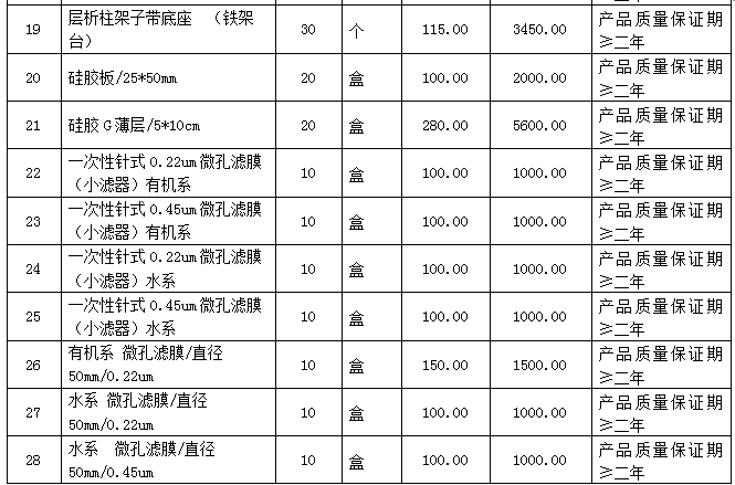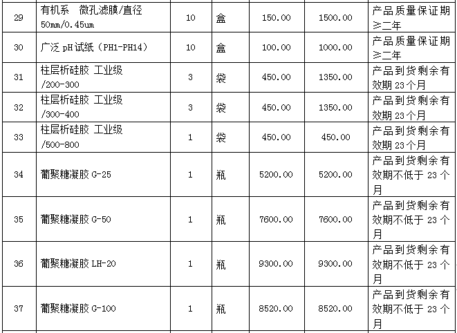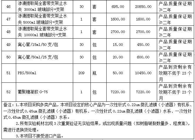 6.1采购内容:本项目包含一批实验耗材的采购、运输配送、安装调试、试运行、检验验收,项目完成期限、技术培训指导及售后服务等。