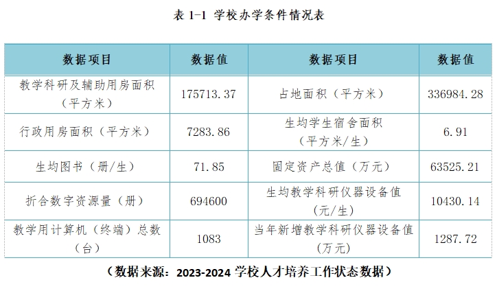 学校不断加强建设,办学理念更加鲜明,办学特色不断彰显,办学条件不断改善,教学质量稳步提升。学校现有直属附属医院1所,非直属附属医院5所,教学医院31所,滇西中草药研究所1个,校内实践教学场所12个(省级以上实训基地6个)。有中草药植物园、中医药文化长廊、中药标本馆、生命科学馆、高黎贡山民族医药馆、校史馆、党建馆和针灸推拿技能实训中心、临床技能实训中心、护理技能实训中心、检验技能实训中心、中药实验中心和基础医学实验中心的“一园一廊五馆六中心”的校内实践教学平台。主要办学条件见表1-1所示。