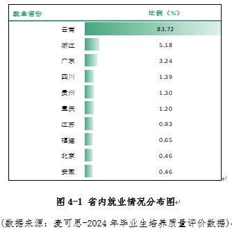 学校致力于地方医疗卫生事业发展和服务区域经济建设。依托保山境内丰富的中草药资源,对接临床医疗、卫生防疫防控、中药栽培、药品制造、健康护理、康复养生等产业链,为地方培养急需的医药人才,近三年,学校为社会输送高技能技术人才5000余人,区域贡献度不断提升。2024届毕业生选择在云南就业的占比为83.72%,毕业生主要就业于医疗和社会护理服务业,毕业生对本地经济社会发展的贡献持续较高,学校为本省的医疗健康重点产业提供了较强的人才支持。