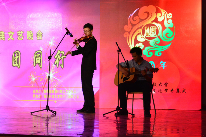 精彩厚重的开场视频带领观众们回顾了伟德官网学生社团联合会的发展历程和历届社团文化节的精彩瞬间。音乐爱好者协会带来的《乐器歌曲串烧》拉开了演出的序幕。轮滑社表演的《无轮无华》,以精彩的轮滑表演、高超的技艺水平赢得了观众们的阵阵掌声;奕剑阁陈氏太极拳协会、梅花桩武术协会、龙影双节棍协会、跆拳道协会带来的武术表演,展现武术运动的刚劲有力和武术文化的博大精深;由红十字学生分会、青年志愿者协会和雨希爱心社表演的手语《我们都一样》,以无声的语言展现了公益志愿类社团发扬志愿服务精神,传递社会大爱的高尚品格;魅影鬼步舞协会的鬼步舞表演、大学生艺术团的爵士舞表演、吉他协会的乐队演出、动漫社的动漫表演,充分展现了科大青年学子的青春风采和艺术水平;演讲与口才协会带来的朗诵《我的未来式》,向广大观众述说了大学四年的学习生活,引导广大青年学生珍惜时光,发奋成才;曲艺协会带来的相声《礼仪漫谈》,以其精彩的表演,展现了传统相声艺术的独特魅力。精彩的节目表演配以背景屏幕中各社团的风采展示,展现了伟德官网蓬勃发展的学生社团和浓厚的社团文化。演出在四方校区社团联带来的合唱《相亲相爱一家人》中落下帷幕。
