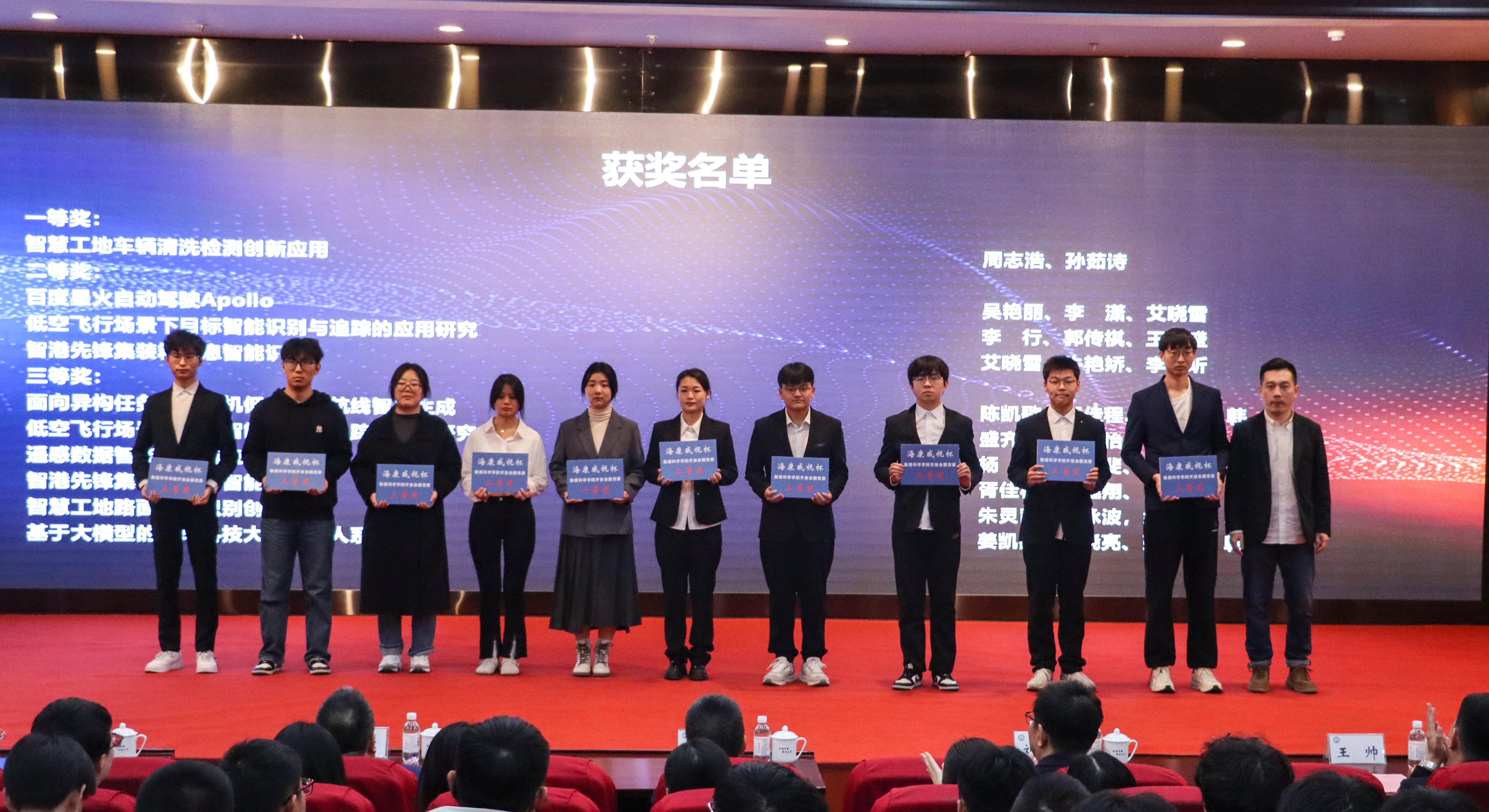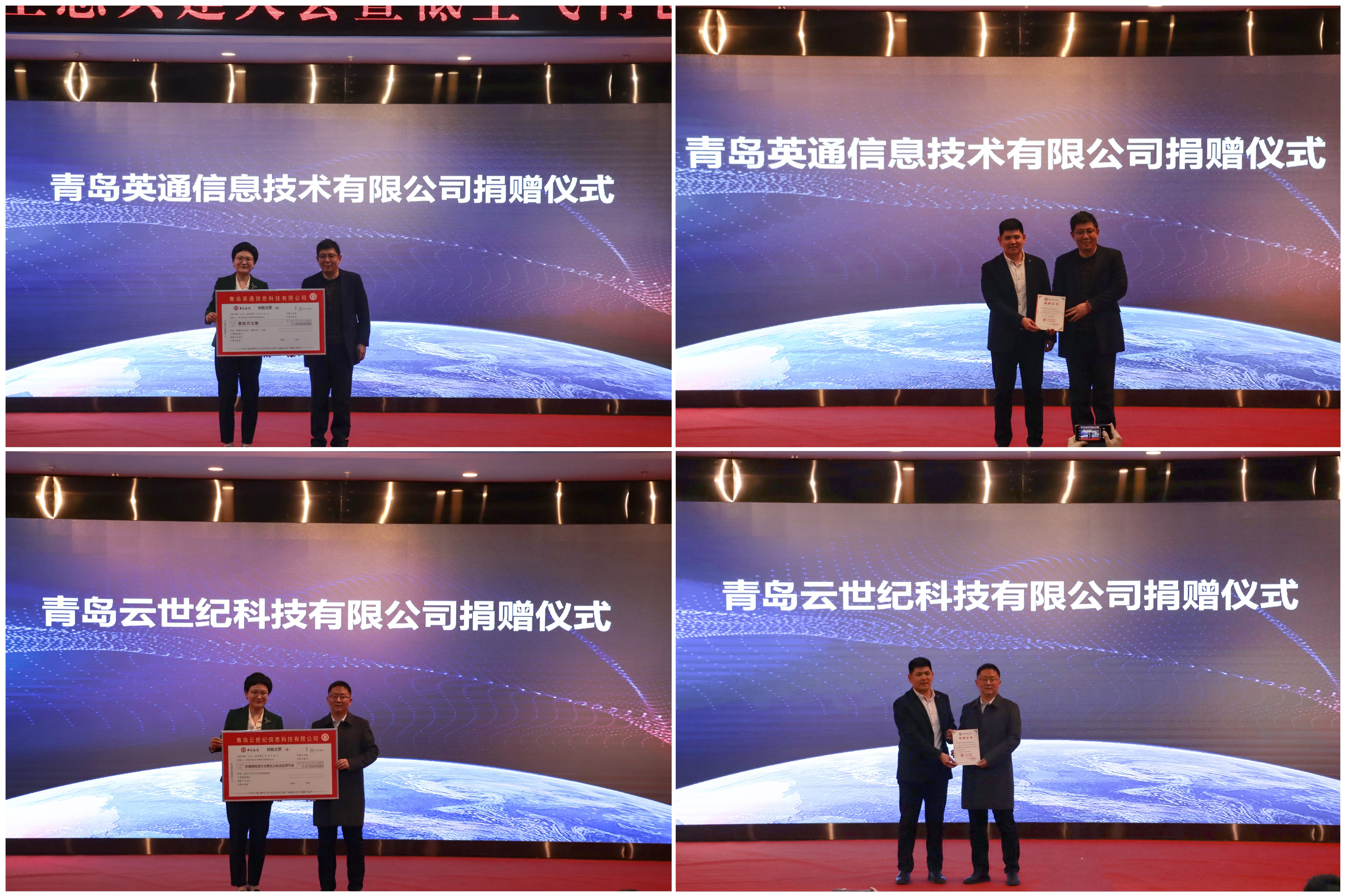 合作发展处处长兼校友工作办公室主任王帅为青岛英通信息技术有限公司、青岛云世纪科技有限公司颁发捐赠证书。会议展示了“海康威视杯”数据科学学院2024年开放命题竞赛获奖获奖项目,并向获奖团队颁奖。