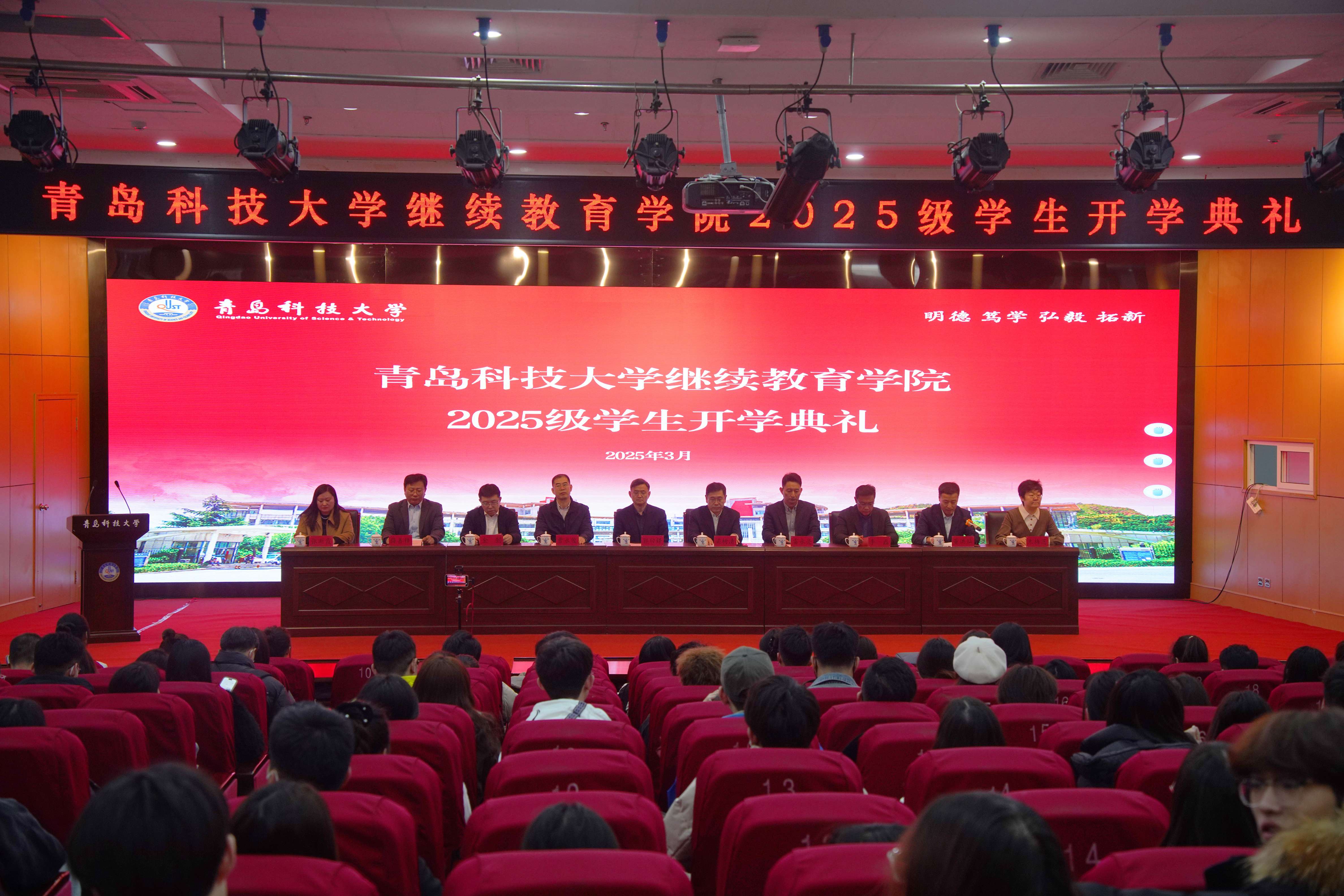 3月15日上午,继续教育学院2025级学生开学典礼暨入学教育在崂山校区第三报告厅举行。学校相关部门负责人,继续教育学院党政领导班子、教师代表及2025级学生代表参加典礼。