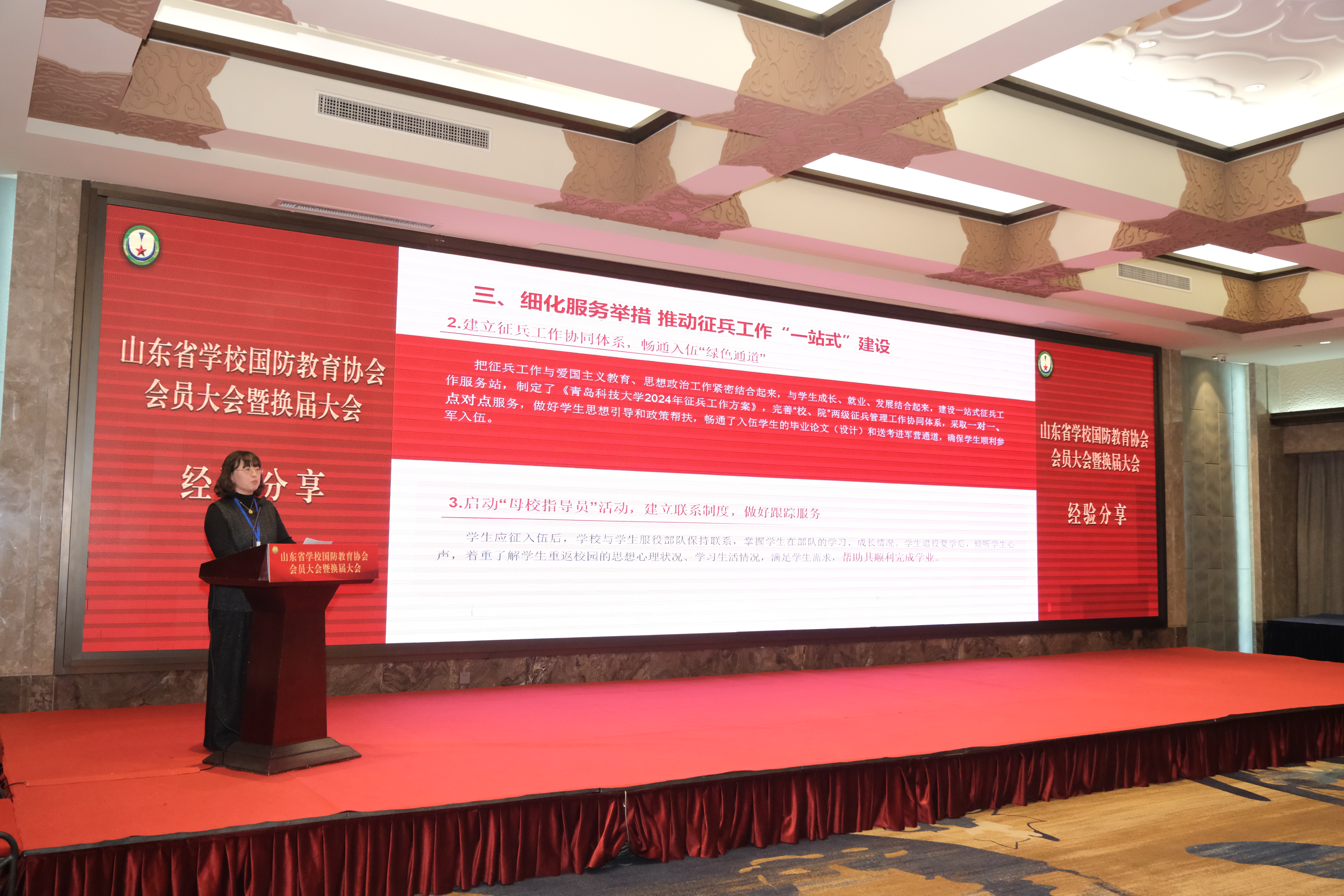 协会选举产生了新一届领导机构,青科大当选为副秘书长单位,李春家同志当选为副秘书长。会上对学校国防教育工作进行了表彰,学校2人荣获山东省国防教育先进个人,1个项目获山东省国防教育工作优秀科研成果。