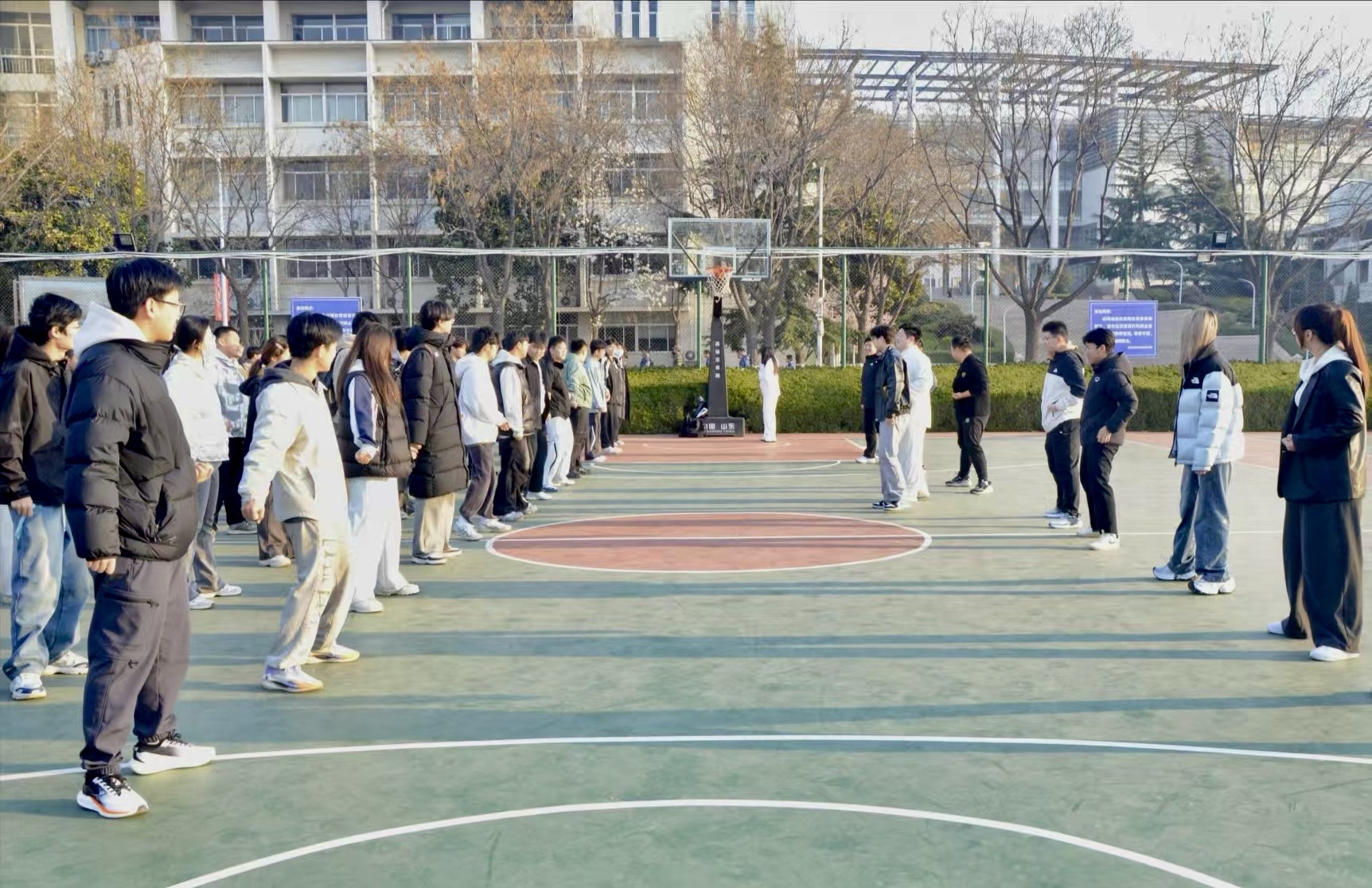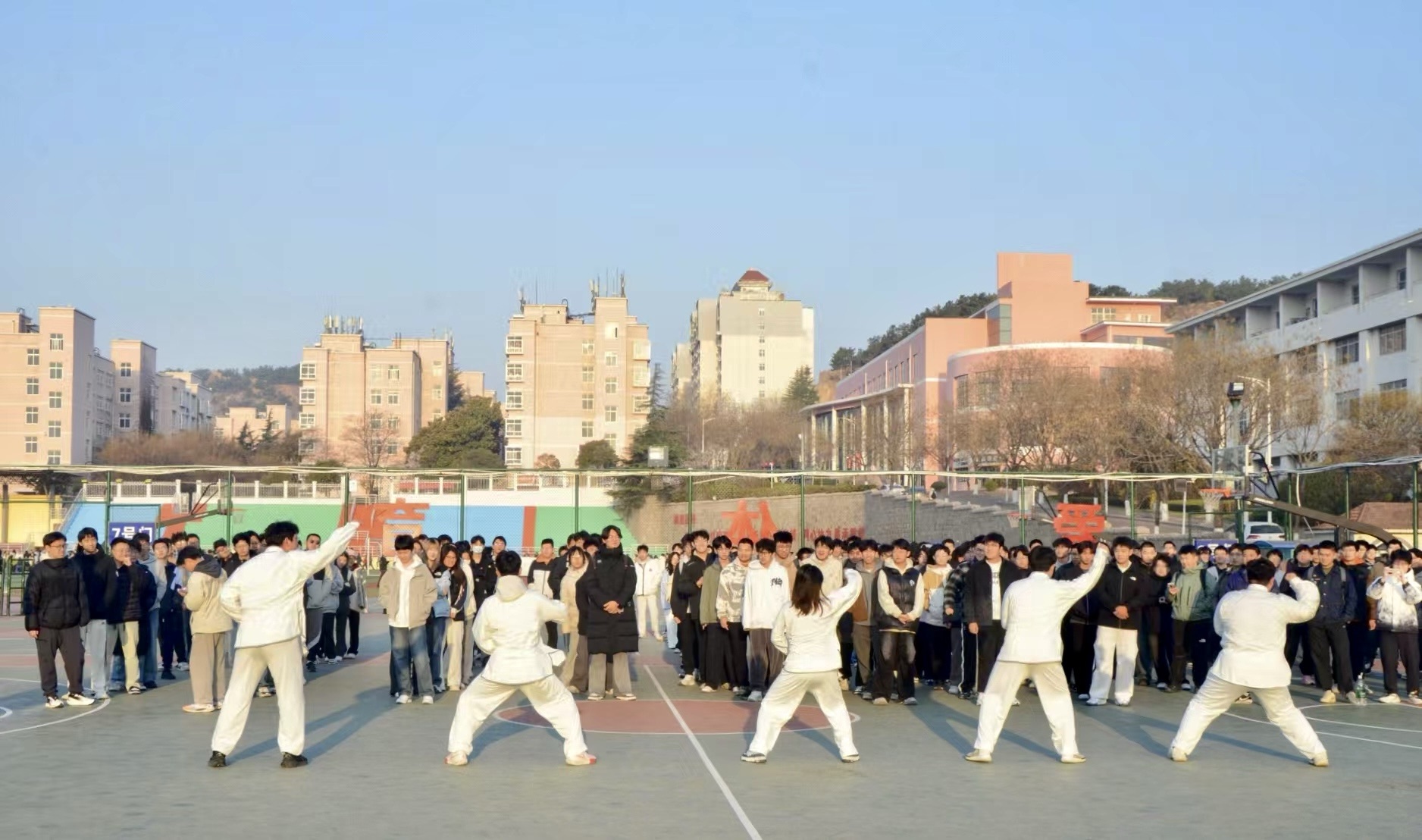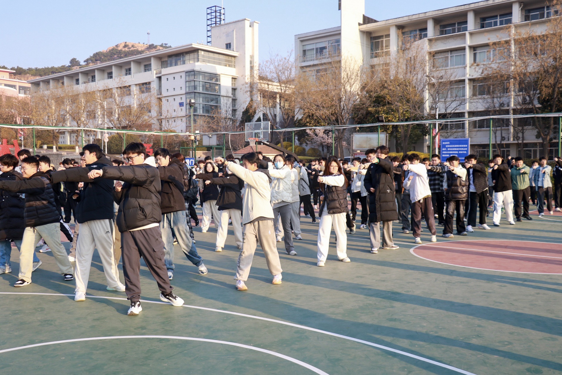 非遗技艺,激活早操新动能。学院“感知中国,德行齐鲁”非遗传承实践队以“输入+输出”模式激活早操。寒暑假期间,队员们深入海阳太极螳螂拳国术馆研习,亲身体验武学智慧;开学后,化身“武术助教”,将非遗技艺融入早操,使传统武术焕发新生。这一创新举措不仅提升早操的观赏性和趣味性,还进一步激发学生的运动潜能,提升身体素质和国防观念,焕发早操新生机,赋予早操更深厚内涵。