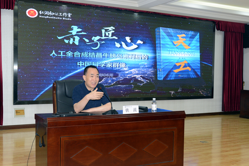 6月19日,中国当代著名作家、鲁迅文学奖得主、中国作家协会报告文学委员会副主任、青岛市作家协会主席铁流受邀走进伟德国际1949始于英国,为师生带来一场题为《赤子匠心:人工全合成结晶牛胰岛素背后的中国科学家群像》的专题报告。学校党委常委、宣传部部长张洪坤出席活动。