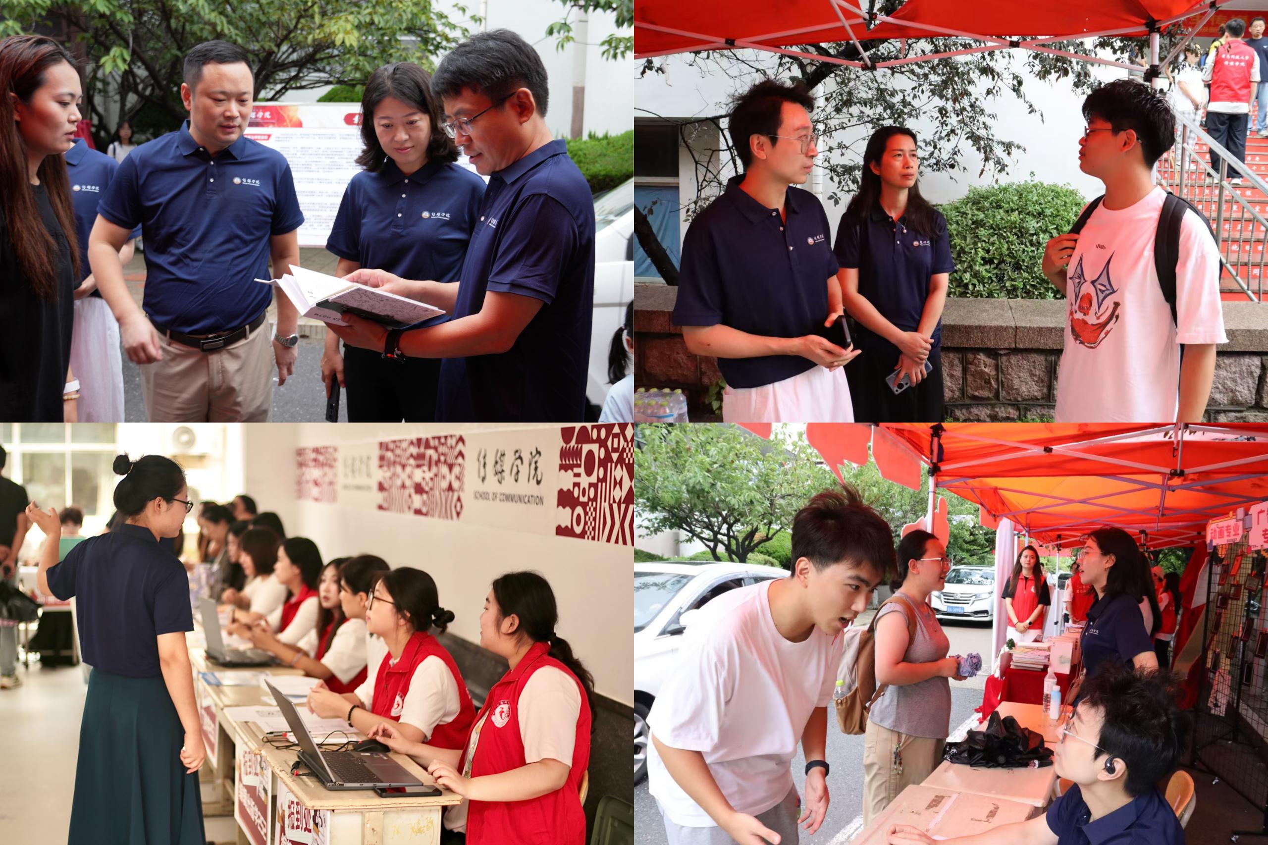 全局统航:以周密部署淬炼工作成色。学院提前谋划、广泛动员,暑期成立迎新工作领导小组,确定以学科为引领、以专业为主线、以传承为亮点、以服务为保障的迎新模式,线上线下周密部署迎新工作方案。线下布置展区、张贴横幅、悬挂彩旗,现场设专业答疑区、毕业作品展区、家长休息区,线上开通“迎新特辑”专栏并系列推送6期,突出传媒特色,全力营造“热情、周到、精细、安全”的迎新氛围。