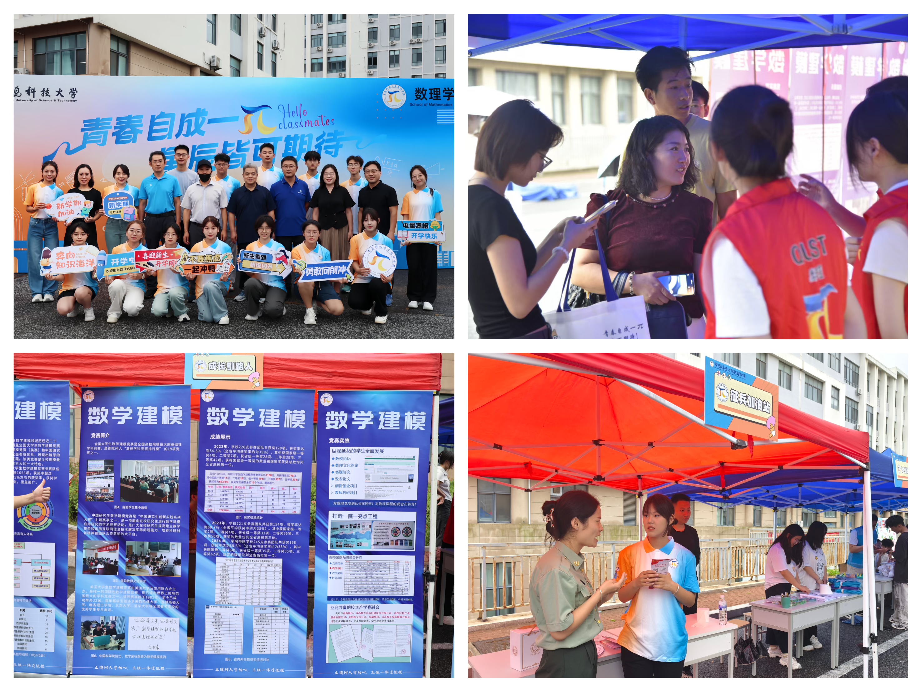 育人:“竞赛育人”特色点燃科研创新热情。数理学院始终坚持以学科竞赛为牵引,培养学生的创新精神和实践能力。本次迎新活动中,学院特别融入了学科竞赛文化元素:在迎新驿站设置“数学建模成果展”,展示近年来学生在全国大学生数学建模竞赛中的优秀作品;举办“科创达人面对面”活动,邀请获奖学生代表与新生交流参赛经验,分享科研心得。一系列活动生动展现了学院在竞赛育人方面的成果,激发了新生对科研创新的兴趣,引导他们从入学起就树立高远志向,筑牢创新基础。