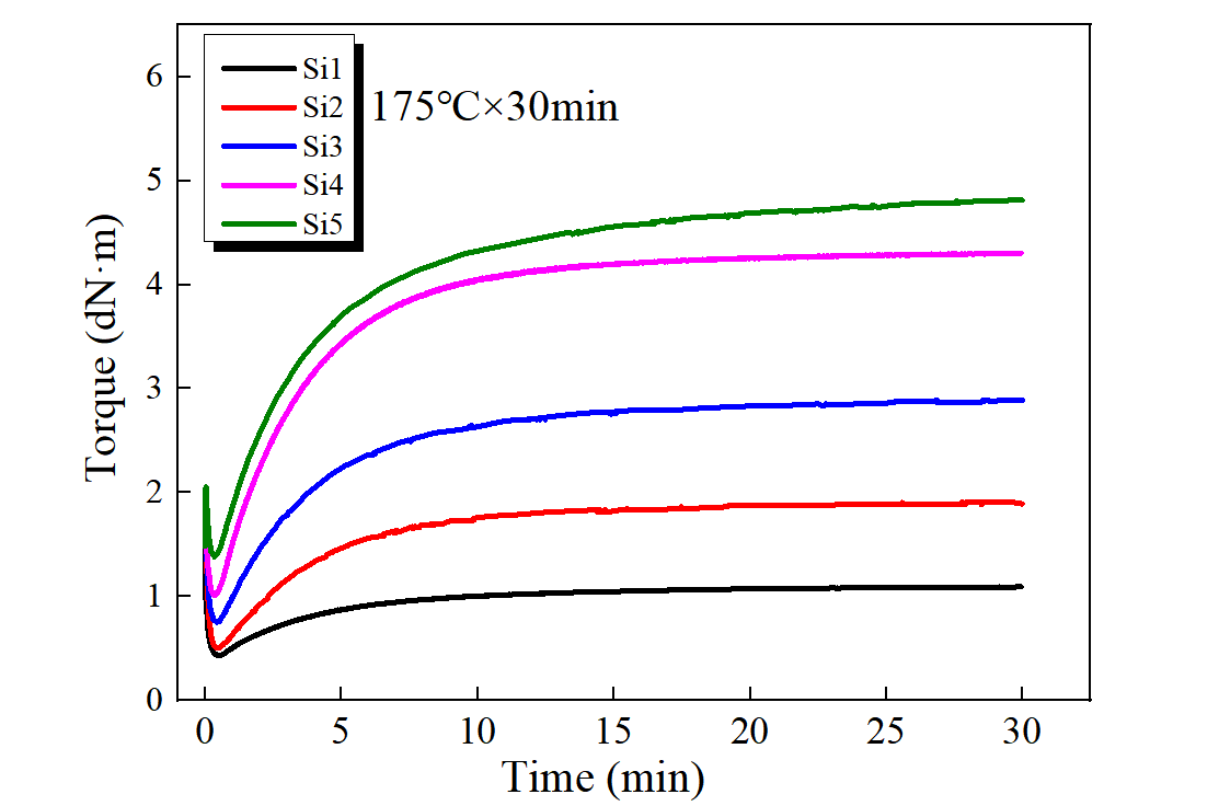 图1. EPDM-g-VTES混炼胶的硫化曲线