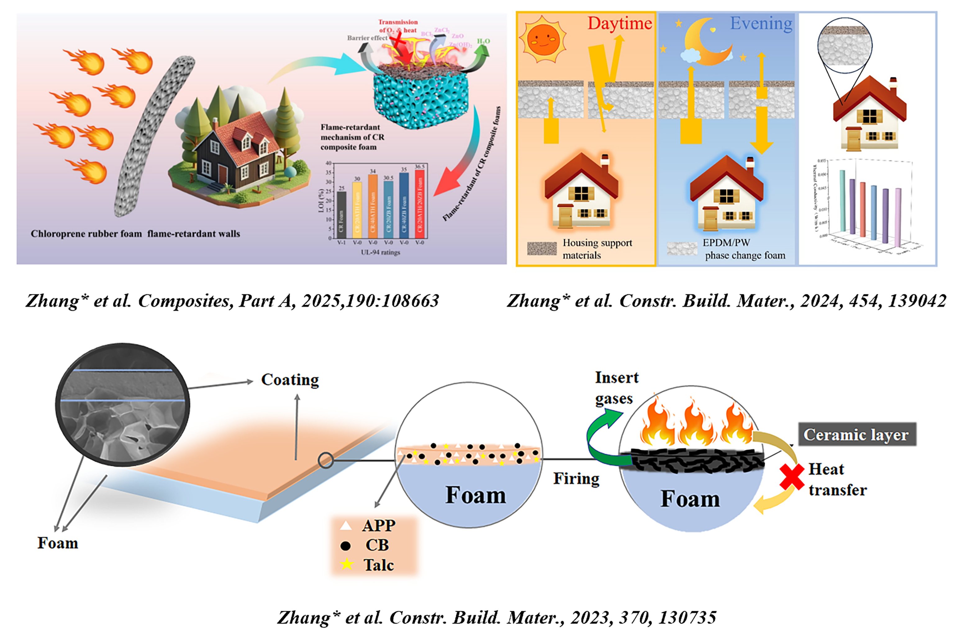 另外,团队在橡胶发泡领域已授权多项发明专利:《一种可陶瓷化阻燃涂层涂覆硅橡胶泡沫及其制备工艺》,授权专利号:ZL202210886260.8;《一种溴化丁基橡胶/聚乙烯保温缓冲材料及其制备工艺》,授权专利号:ZL202310738828.6;《一种阻燃氟硅橡胶泡沫复合材料及其制备工艺》,授权专利号:ZL202210895296.2;《一种微孔发泡密封条》,授权专利号:ZL2016101505159;《一种氯磺化聚乙烯微孔发泡材料及其制备方法》,授权专利号:ZL2016101505337;《一种丁苯橡胶微孔发泡材料及其制备方法》授权专利号:ZL201610150936.1。