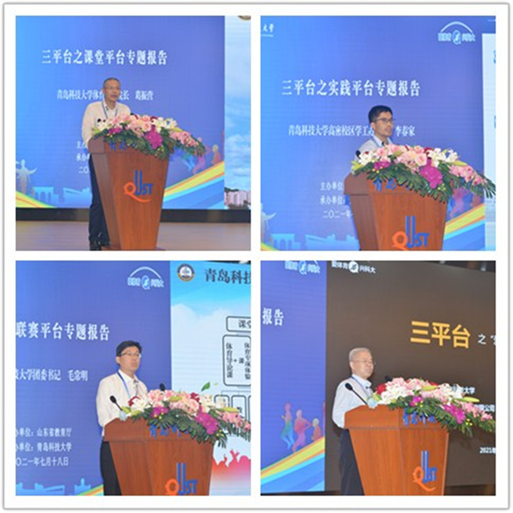 学校体育学院院长葛振营、高密校区学工办主任李春家、团委书记毛常明,分别就体育综合改革“三平台”之课堂平台、实践平台、联赛平台做了专题报告。青岛高校信息产业股份有限公司总经理杜长河,就体育综合改革信息管理系统“爱体育”APP做了专题报告。