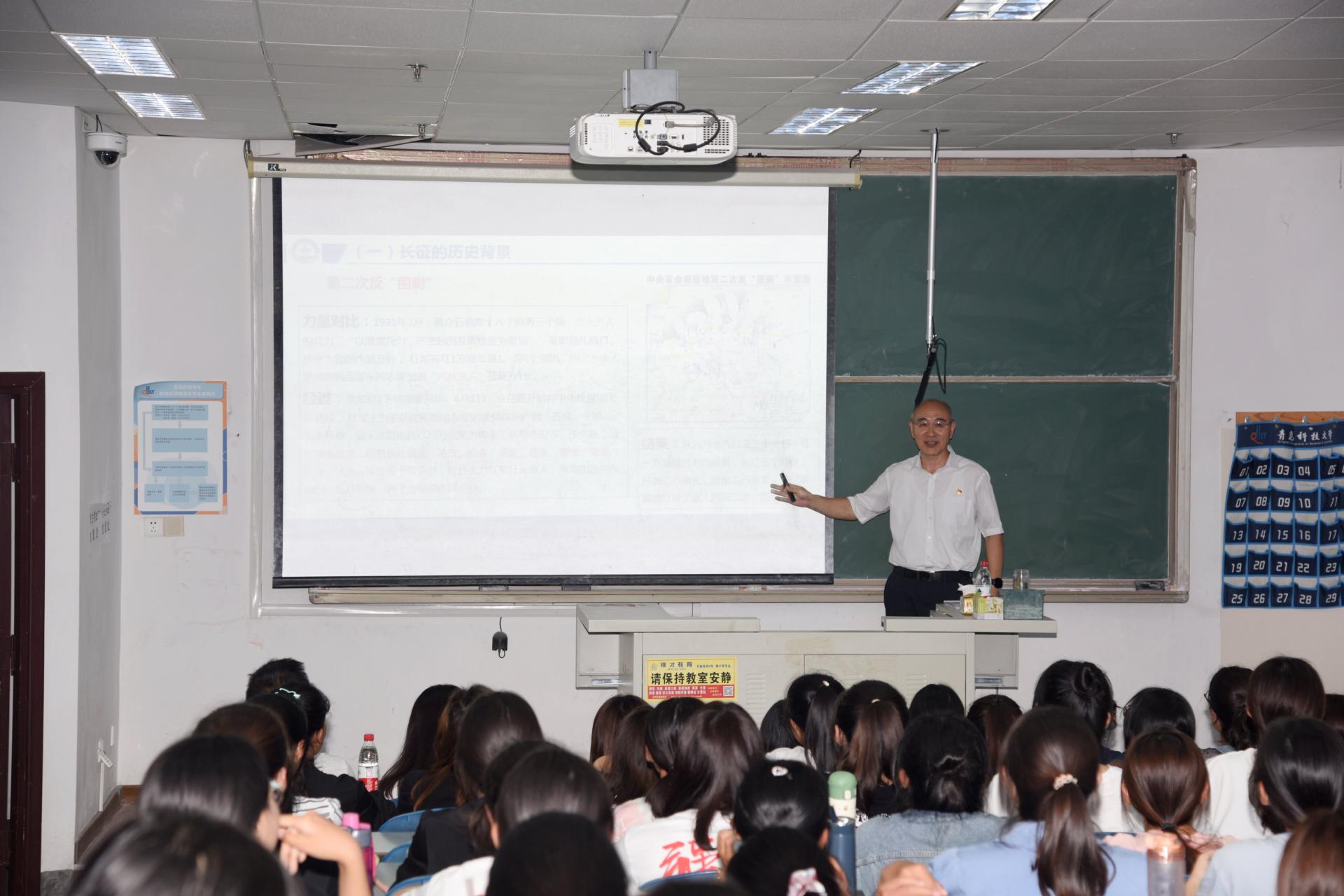9月22日下午,校长陈克正走进学生课堂,以“弘扬长征精神 走好新时代长征路”为主题,为经管学院2021级新生讲授“开学第一课”。