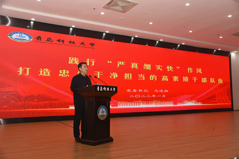 党委书记马连湘在主持会议时表示,2021年学校取得的工作成绩可圈可点、令人鼓舞,全校师生埋头苦干、奋楫笃行,凝心聚力、履践致远,对科大精神、橡胶品格、五有理念、科大家风作出了很好的诠释,体现了青科大人的勤奋与精神,展现了科大干部的作为与担当。