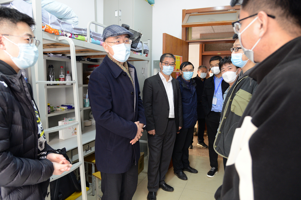 在崂山校区北区2号楼、北区9号楼学生宿舍,马连湘、丁林看望了机电学院、自动化学院部分学生,详细询问了学生上课、生活等采取的防控措施,希望同学们相互鼓励支持,保持良好心态,积极配合学校各项防控举措,勉励大家同舟共济、共克时艰,夺取疫情防控的最终胜利。马连湘强调,当前国际、国内疫情防控形势严峻复杂,一是要以高度的政治责任感、使命感重视疫情防控工作,不折不扣落实好上级疫情防控工作要求,按规定做好重点信息摸排、全员核酸检测、校园环境消杀等工作,坚决筑牢校园疫情防控安全防线。二是要充分发挥全校各级党团组织作用,干部冲锋在前、党员先锋带头,加强学生思想疏导、情绪安抚,引导学生增强体育锻炼。要进一步发挥好师生志愿者作用,积极配合落实学校各工作专班安排。三是要全力保障正常教学科研等校园秩序,在全力做好疫情防控的基础上,未雨绸缪、精心组织,科学合理安排教学、科研、管理等工作,扎实做好各项工作应急预案。