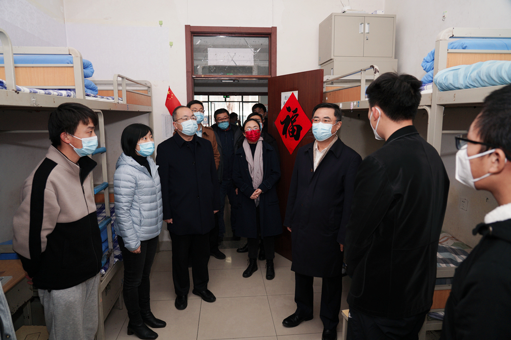 在四方校区,陈克正、李志波先后来到校门口、学生宿舍、校医院、快递商贸点等防控重点区域检查指导疫情防控工作,亲切慰问了医疗保障、后勤保障、安全保卫等工作人员。陈克正强调,一是必须从思想上高度重视,充分认识这次疫情的严峻性、复杂性,在前期封闭校园管理、全员核酸检测等有效措施基础上,进一步加强校园管控、佩戴口罩、信息摸排等各方面工作。二是必须压紧压实责任,要进一步明确、细化工作分工,层层落实责任、层层传导压力,完善学校、工作专班、院级单位、师生等多级防控体系。三是必须坚决贯彻落实各项防控举措,严格按照省委“21条举措”“11条工作要求”和属地化疫情防控措施,结合学校实际制定配套措施和应急预案,形成全员重视、全员参与、全员落实的工作格局。