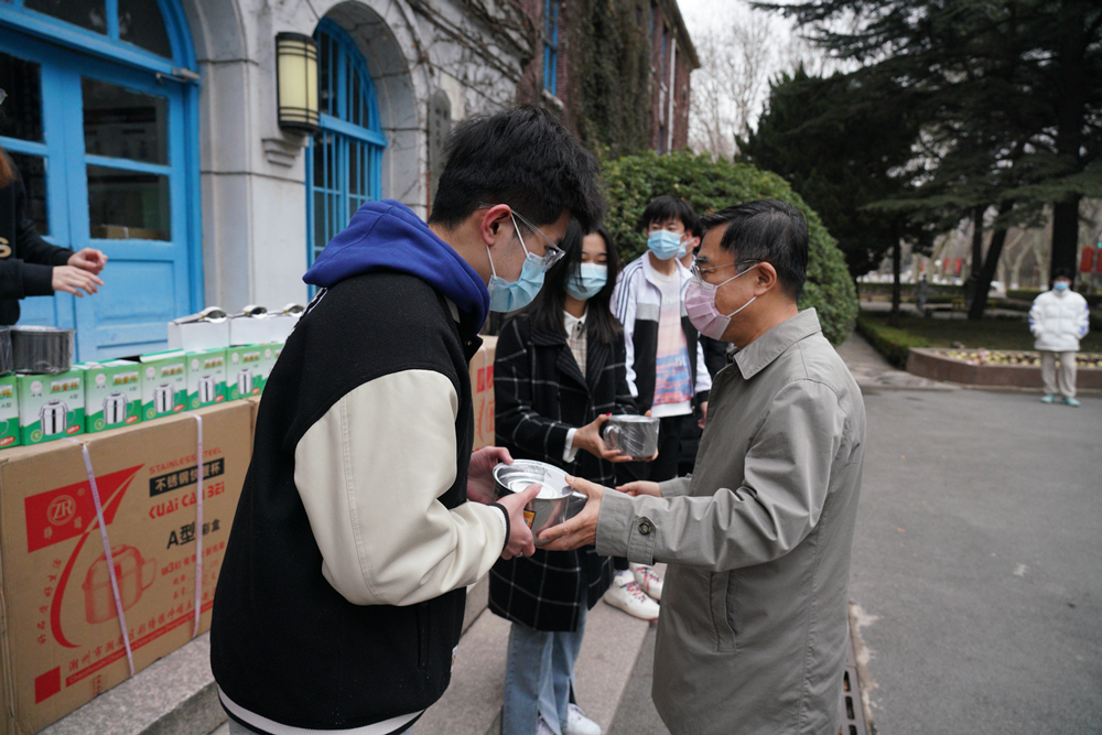 3月18日上午,学校为四方、崂山、黄岛和高密校区的近34000名学生发放了不锈钢餐盒,倡导绿色节约的生活方式,确保疫情防控特殊时期学生用餐安全。