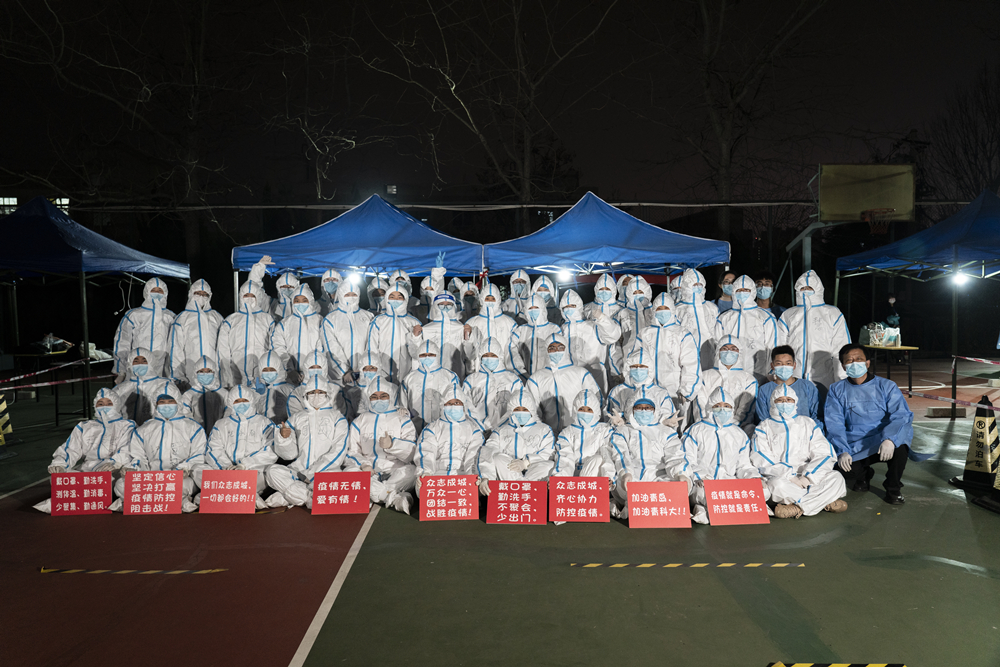 这支队伍中,还有5名女性身怀六甲依然坚守岗位。杜炫炫已怀孕6个多月,连续采样一干就是几小时,每次同事想要替换她,她总是说“我能行”,坚持战斗;庄晓雯负责信息统计和物资准备工作,连续工作加之怀孕反应大,引起心脏不适,但她只休息了一晚上,就又冲上了前线。她们用实际行动感动着身边的同事,也用钢铁意志守护着师生的健康。