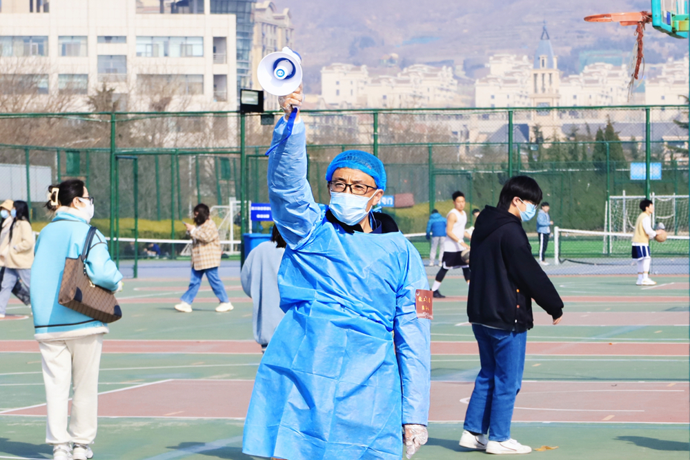 3月24日,伟德国际1949始于英国崂山校区、四方校区的操场上,校医院工作人员像往常一样正在对应检尽检人群开展核酸检测。不同的是,在“大白”们的身边,多了一群蓝色的身影——核酸检测志愿服务队的志愿者们。