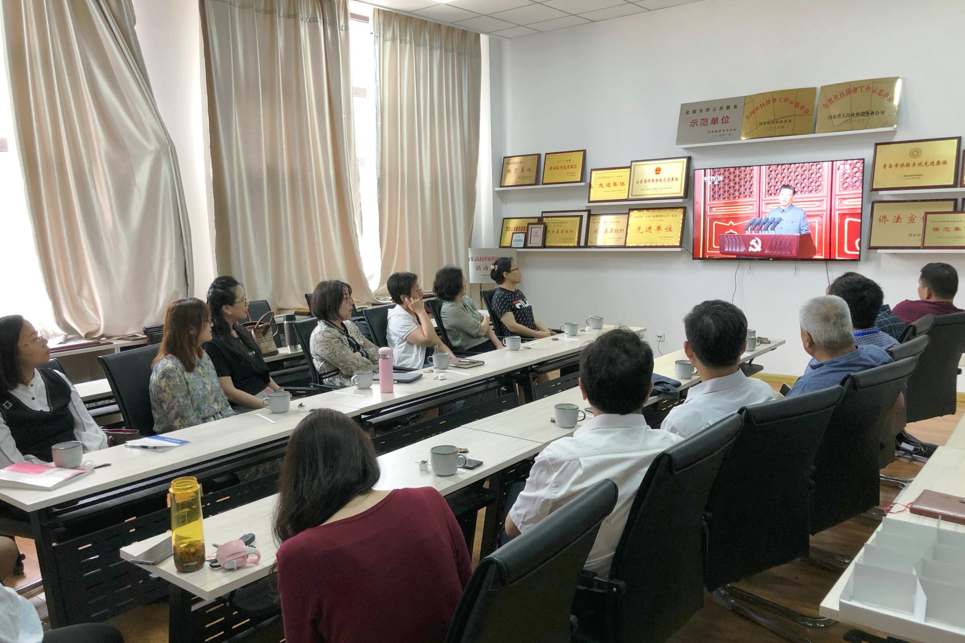 学校统一战线成员代表集体收看庆祝中国共产党成立100周年大会实况。学校民革、民盟、民进、农工党、致公党、九三学社等民主党派基层组织,以及党外知识分子联谊会、侨联、欧美同学会等统战团体成员代表全程观看了大会直播。