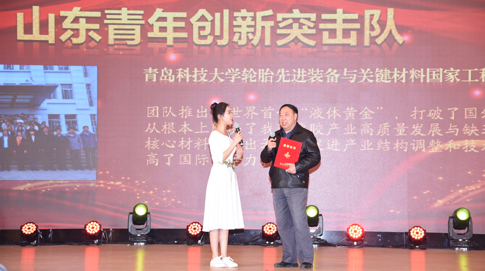 党委副书记张淑华为“山东青年创新突击队”“山东青年创新榜样”和“挑战杯”“互联网+”国赛、省赛项目指导教师代表颁奖。