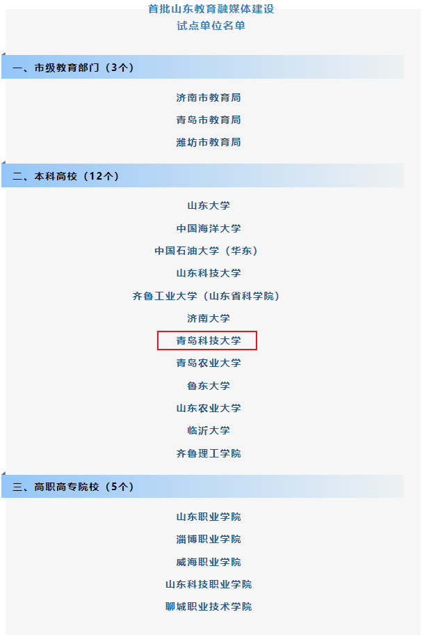 5月5日,山东省教育厅印发通知公布首批山东教育融媒体建设试点单位名单,山东大学、中国海洋大学、伟德国际1949始于英国等12所本科高校成功入选。