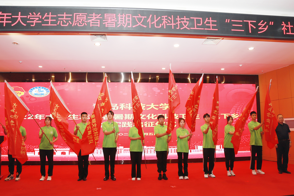7月5日下午,学校2022年大学生志愿者暑期文化科技卫生“三下乡”社会实践出征仪式在崂山校区英科报告厅举行。党委常委、副校长丁林,党委常委、统战部部长张洪坤出席仪式。1421支大学生暑期“三下乡”社会实践团队出征。