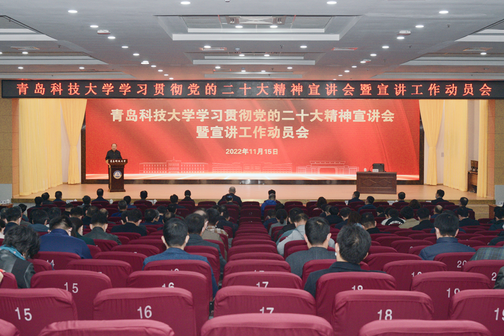 会议采取线上线下相结合的方式,崂山校区设主会场,四方校区、高密校区、中德校区、济南校区等设视频分会场。校领导,中层副职以上领导干部,校院两级党委理论学习中心组成员,学校学习贯彻党的二十大精神宣讲团成员、青马工程学员和部分学生代表参加了会议。