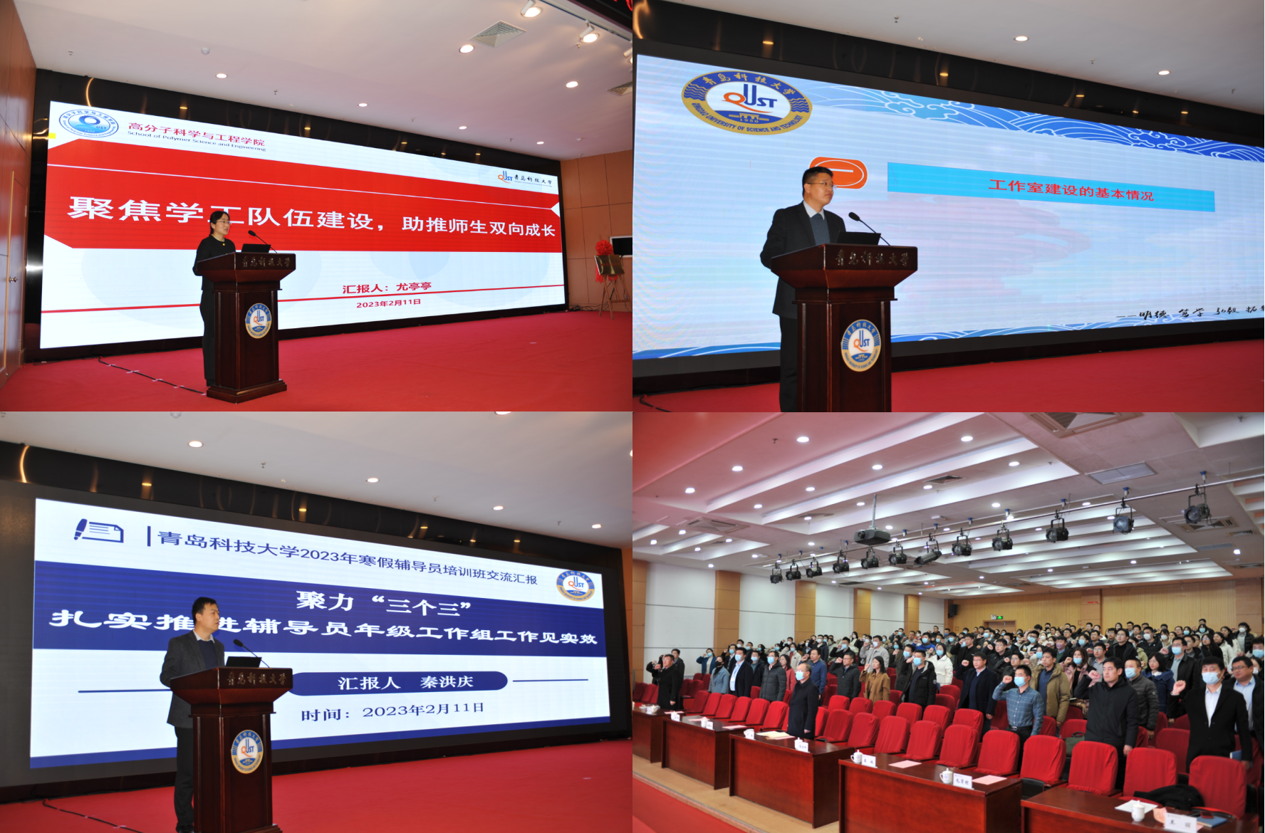 在工作交流部署环节,高分子学院党委副书记兼副院长尤亭亭以《聚焦学工队伍建设,助推师生双向成长》为题,贾可好工作室以《辅导员工作室建设的初步总结和思考》为题,本科生毕业年级工作组组长秦洪庆以《聚力“三个三”,扎实推进辅导员年级工作组工作见实效》为题,分别进行了汇报发言;学团系统5位负责同志分别对相关业务工作进行了安排部署,引导全体辅导员想透、说清、干实。