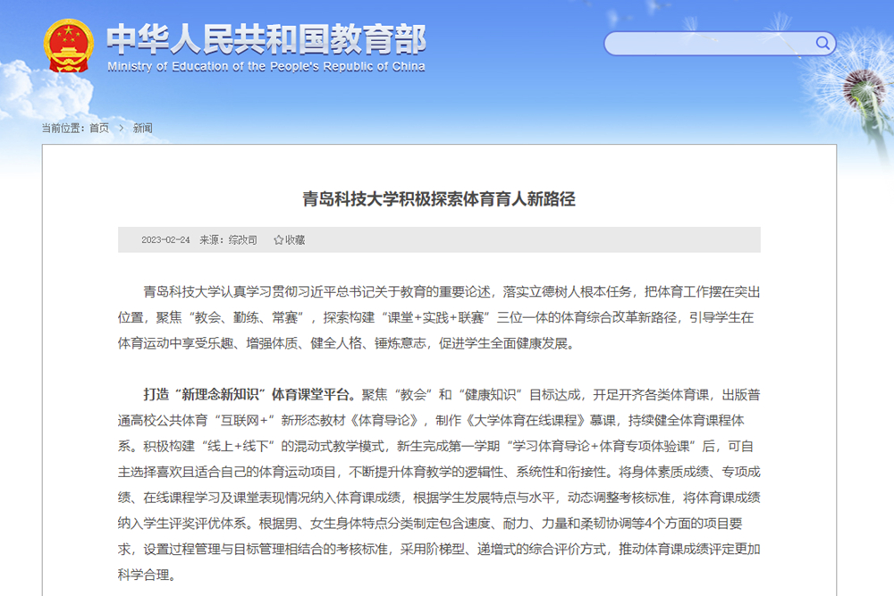 2月24日,教育部官网《战线联播》栏目以《伟德国际1949始于英国积极探索体育育人新路径》为题,报道伟德官网把体育工作摆在突出位置,聚焦“教会、勤练、常赛”,探索构建“课堂+实践+联赛”三位一体的体育综合改革新路径,引导学生在体育运动中享受乐趣、增强体质、健全人格、锤炼意志,促进学生全面健康发展。全文如下: