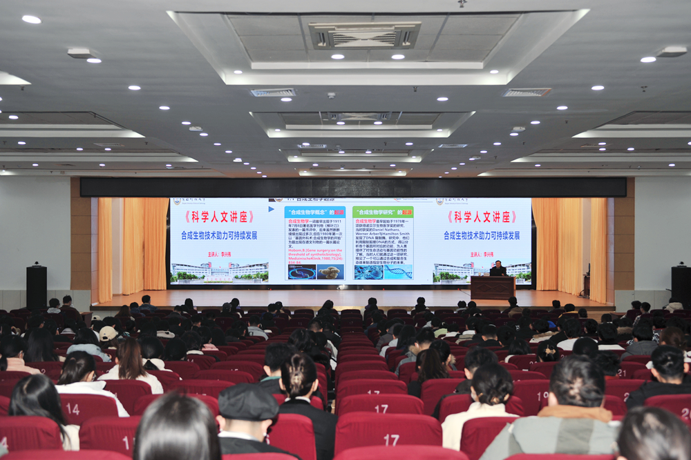 李兴伟书记以“合成生物技术助力可持续发展”为主题,从“合成生物学是什么”入手,围绕合成生物学的发展、成果、应用及未来等展开具体阐述,用最前沿的学术成果、最生动的语言,结合学校特色深入浅出地对合成生物技术问题进行拆解,让研究生们明白了学科交叉融合的重要性,同时也展现了理论与实际结合的必要性,对研究生的学习与科研都具有重要的指导意义。在座研究生纷纷表示受益匪浅,全场响起热烈的掌声。