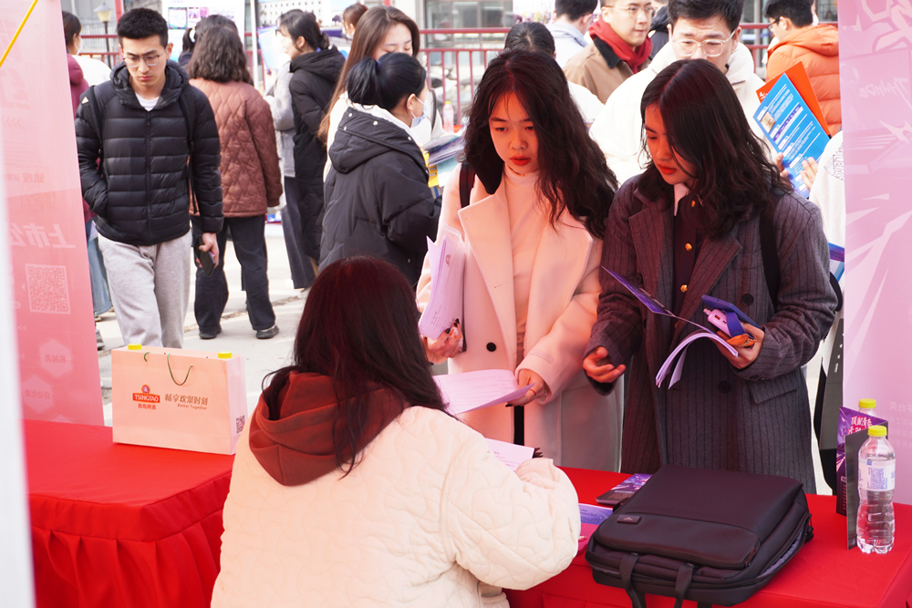 本次招聘会是伟德官网主办的2023年春季第二场线下大型双选会,也是在崂山校区举办的首场综合类大型双选会。招聘会现场人头攒动、气氛活跃,颇受供需双方欢迎。学子们携带精心准备的简历,积极与现场招聘人员交流,主动了解意向单位情况,筛选适合的工作单位投递简历。各招聘单位也主动向学生介绍公司的发展前景、招聘需求和福利待遇等优势。学校还通过山东教育电视台《职面未来》节目在现场开通了直播带岗渠道。招聘活动采用全程线上直播的形式同步开展,未到现场的学生们可以通过系列直播活动,实现线上实时关注招聘会最新动态和互动交流。创新招聘形式,真情服务学生,线上线下就业服务齐头并进是本次双选会的又一大亮点。