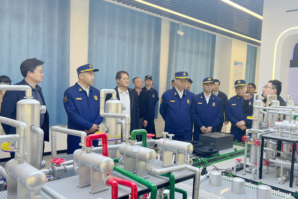 李建春一行实地考察了危化实训中心、化工综合实训中心、化工单元实训中心、虚拟仿真实训中心、安全体验中心等场所。李建春对淄博基地教学管理、实习实训设施条件给予充分肯定,他表示要进一步探索双方合作方式,不断推进校园消防安全管理、危化品专业队伍培训、实习实训基地拓展等工作,努力形成互带互动、优势互补、资源共享、共同发展的共建新格局。