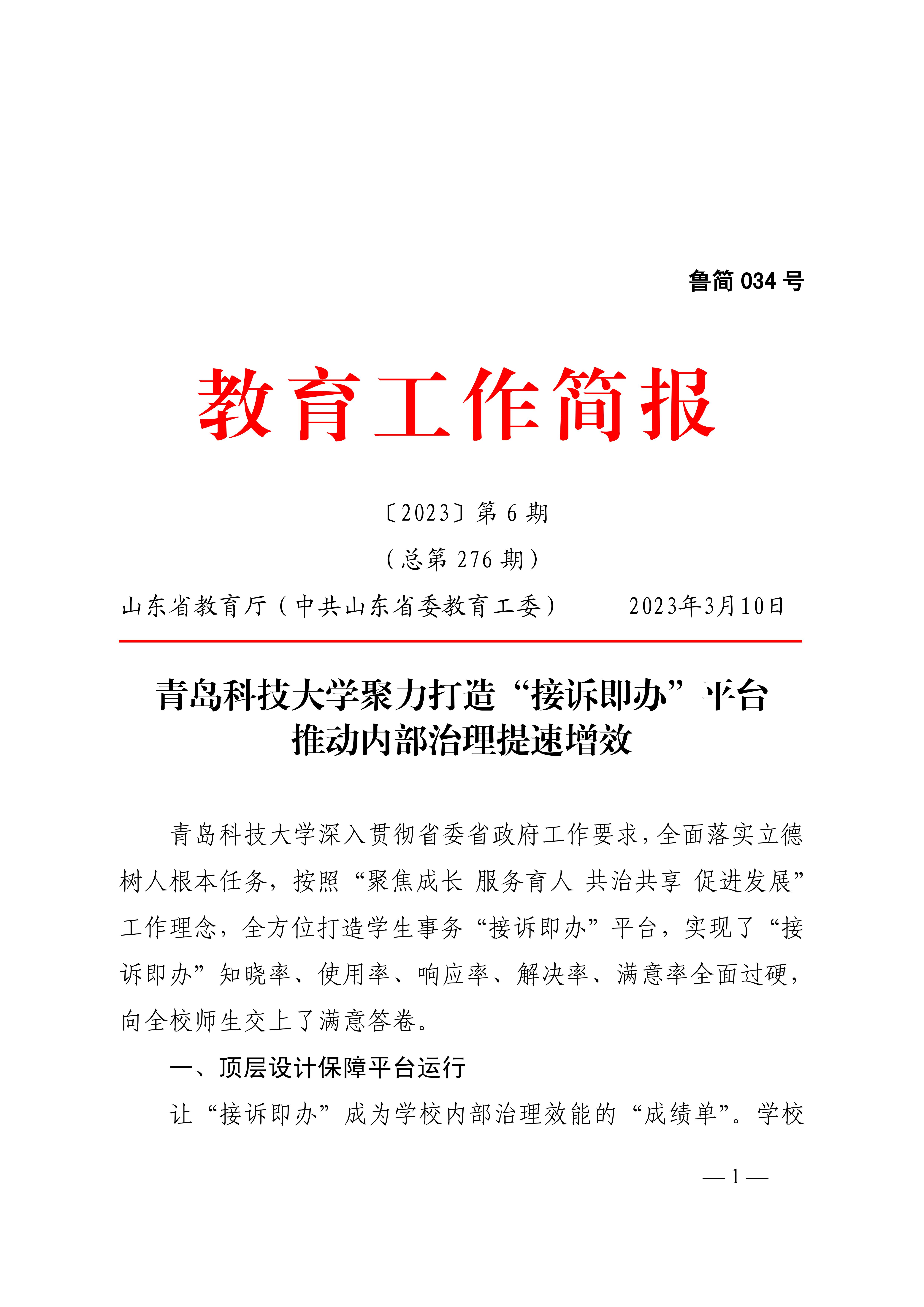 日前,山东省教育厅《教育工作简报》刊发伟德国际1949始于英国“接诉即办”工作典型经验,这是山东省教育厅专家调研组开展高校“接诉即办”工作调研后,首次针对这项工作面向全省推广典型经验,标志着伟德官网“接诉即办”工作走在全省高校前列。全文如下: