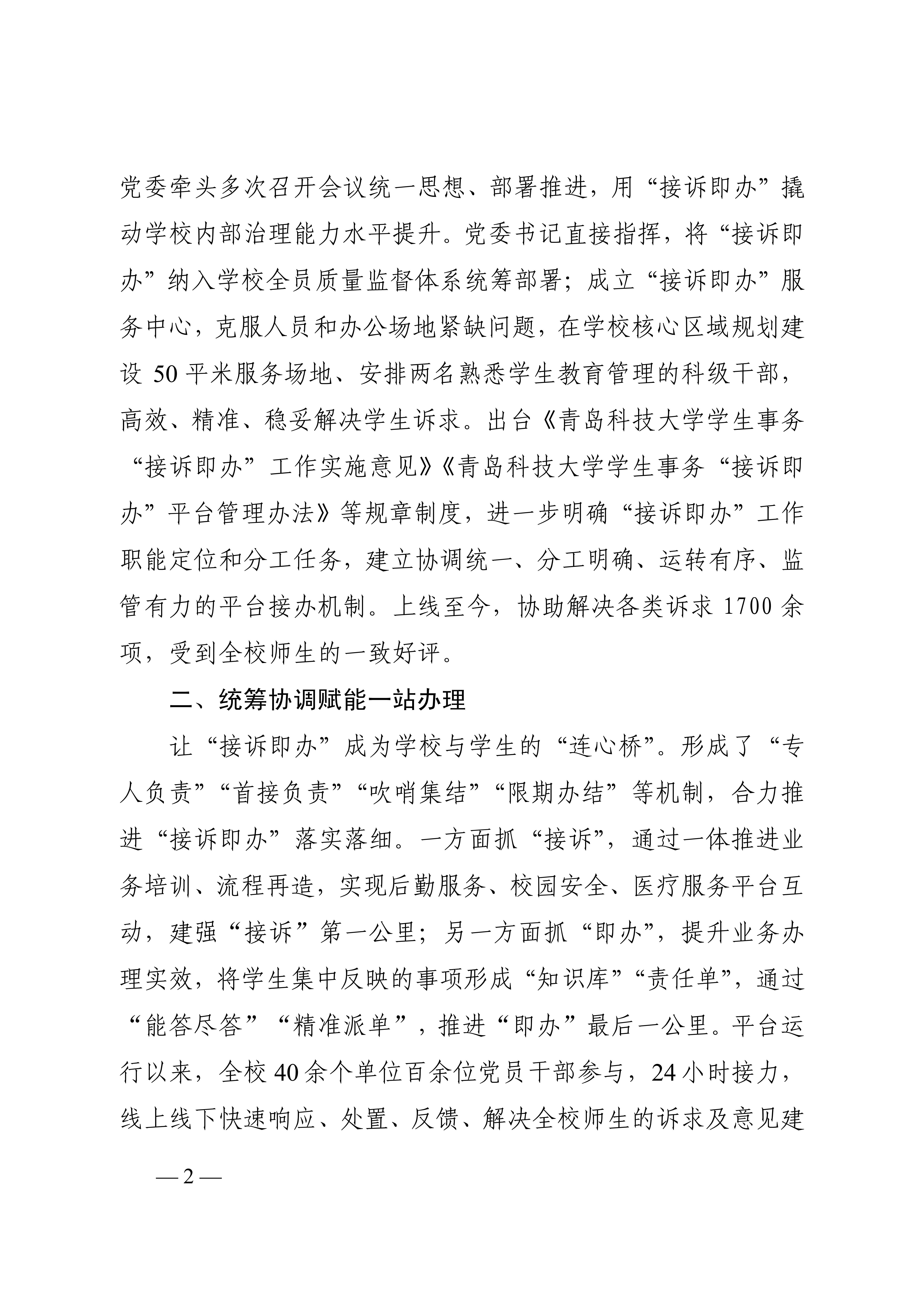 青岛科技大学聚力打造“接诉即办”平台