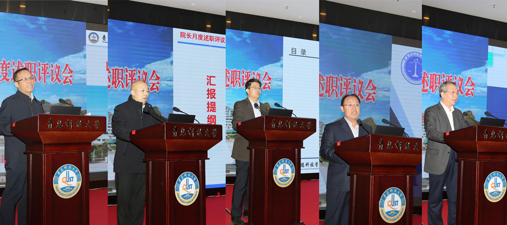 为进一步树立大抓基层的鲜明导向,充分发挥各学院主观能动性,营造比学赶超的浓厚氛围,让“走在前、开新局”成为干事创业的新常态,4月6日下午,学校在崂山校区第三报告厅召开首期学院院长述职评议会。学校党委领导班子成员出席会议,党委书记李兴伟主持会议,经济与管理学院、数理学院、中德科技学院、法学院、材料科学与工程学院等五个学院院长进行了述职。