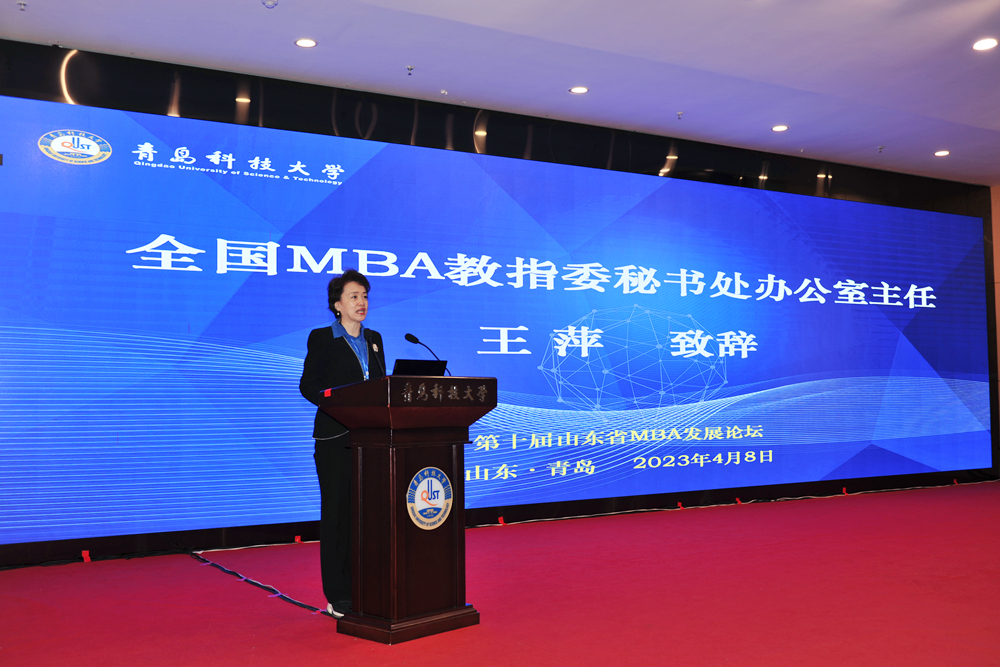 王萍在开幕式上介绍了全国MBA的发展历程及优秀培养院校的典型经验做法,肯定了近年来山东省MBA教育取得的成果并指明了未来发展方向。她表示,MBA教育为地方经济和区域经济发展作出重大贡献,山东省MBA发展论坛是和谐共赢的家园,对提升MBA培养水平和质量大有裨益,希望进一步加强创新研究,共同推动MBA教育高质量发展。