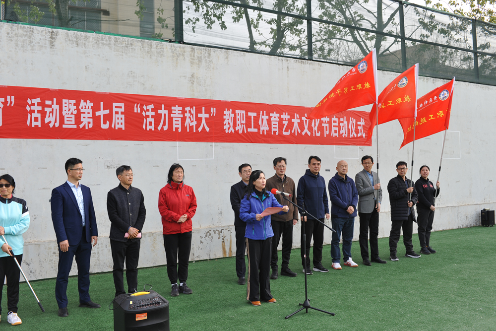 4月12日下午,伟德官网教职工“阳光体育”活动暨第七届“活力青科大”体育艺术文化节启动仪式在崂山校区排球场举行。校党委副书记沈文青致辞并宣布活动正式启动,工会主席郭曰铎主持启动仪式。