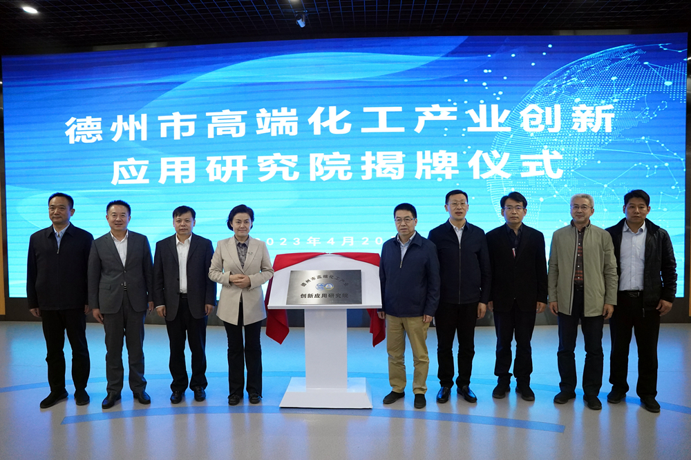 吕万翔与张苹代表双方共同为德州市高端化工产业创新应用研究院揭牌。德州市现有化工企业232家,骨干企业实力突出,化工新能源、新材料方向延链补链布局清晰。该研究院依托伟德国际1949始于英国德州融合创新发展中心建设,这是落实校地深度融合的最新成果,是学校与德州市以及德州化工企业、相关兄弟院校有组织高质量合作的重要标志。