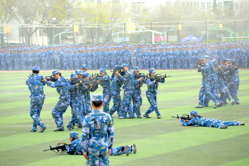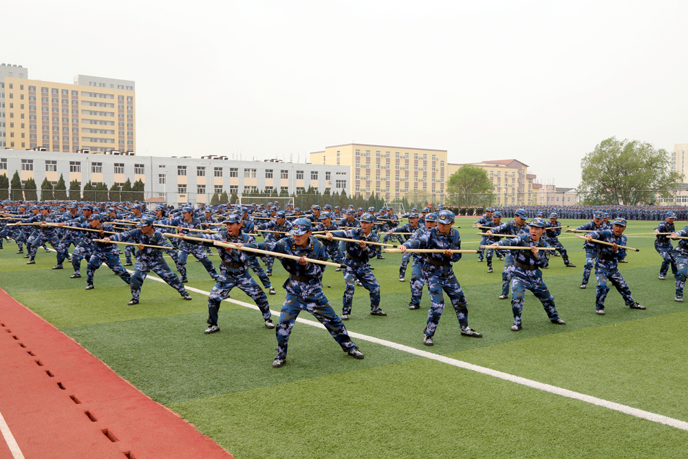 在军训项目汇报环节,参训学员表演了军体拳、匕首操、刺杀操、擒敌拳、棍术、班组战术与战场医疗救护等训练科目,精彩的战术对抗演练赢得了在场师生的阵阵掌声。