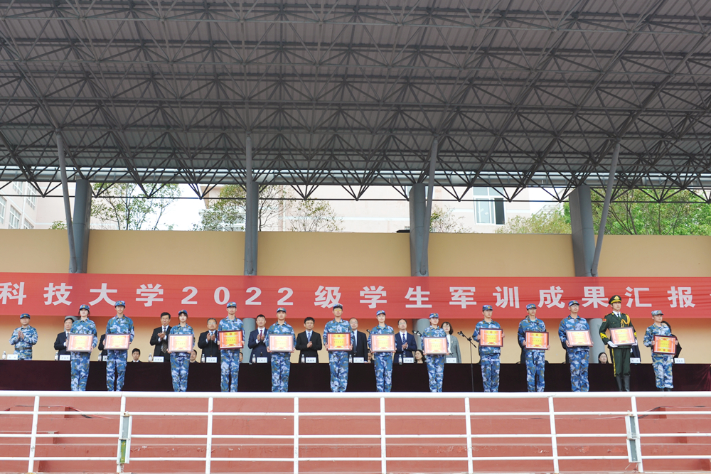 与会领导先后为董健康等108名优秀教官、徐文丽等14名优秀教导员、一营一连等25个军训先进连、一营六连等27个内务先进连、陈自干等411名军训优秀学员颁奖。