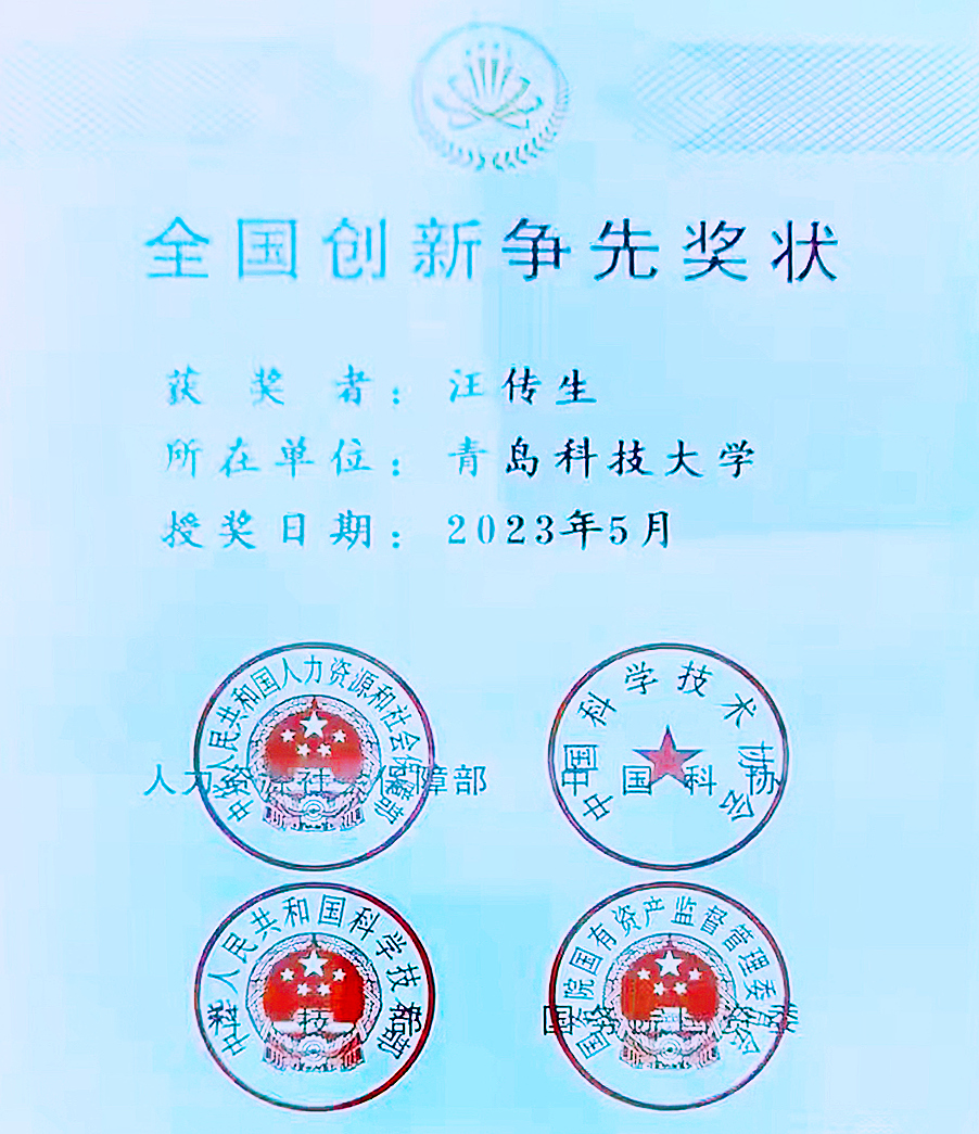 如今,作为第一完成人,汪传生教授已获得国家科技进步二等奖2项、省部市厅级科技奖励30余项;发表学术论文300余篇,授权国家发明专利70余项。