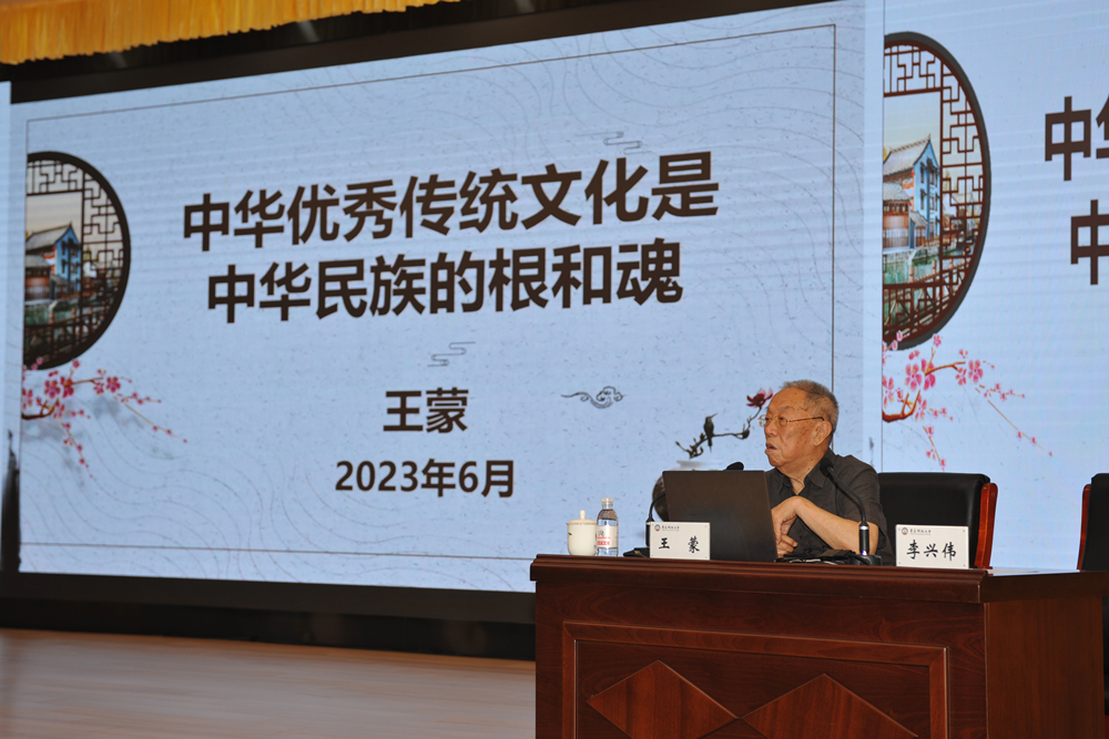 李兴伟在主持报告会时指出,高校的根本任务是立德树人,以什么样的思想引领人、用什么样的文化涵养人,关系着培养什么人、怎样培养人、为谁培养人的根本问题。在全校上下深入开展学习贯彻习近平新时代中国特色社会主义思想主题教育热潮里,王蒙先生的报告对广大师生进一步深入学习理解中华优秀传统文化、从中华优秀传统文化中汲取奋斗力量推动学校高质量发展具有重要的指导意义。全校师生要以此次报告为契机,进一步坚定文化自信、增强历史主动、保持发展定力,主动学习中华民族优秀传统文化,从中获得精神鼓舞,升华思想境界,陶冶道德情操,完善优良品格,培养浩然正气,为加快建设“特色鲜明走在前列”高水平大学而团结奋斗。