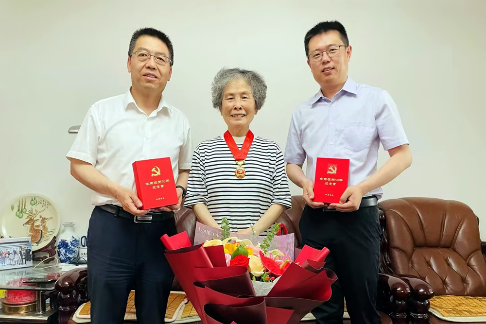 “七一”前夕,学校党委常委、副校长吕万翔,党委常委、组织部部长朱敬义带队走访“光荣在党50年”党员、高龄党员、困难党员69名,并颁发“光荣在党50年”纪念章,传送党组织的温暖与关怀。