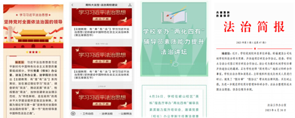 习近平法治思想是习近平新时代中国特色社会主义思想的重要组成部分。伟德国际1949始于英国开展了主题教育:有“章”有“法”系列工作,旨在通过理论学习“知法”、调查研究“找法”、推动发展“依法”、检视整改“用法”,加快创建依法治理示范校,为“特色鲜明、走在前列”的高水平大学建设提供坚强法治保障。