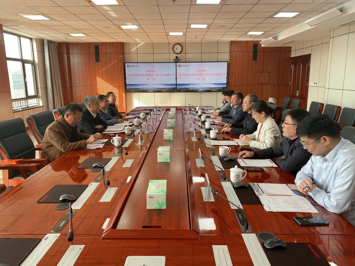 11月14日,山东科技职业学院党委委员、纪委书记秦建坤等一行4人来校交流纪检监察工作。校党委常委、纪委书记、省监委驻伟德国际1949始于英国监察专员刘明永出席座谈会。
