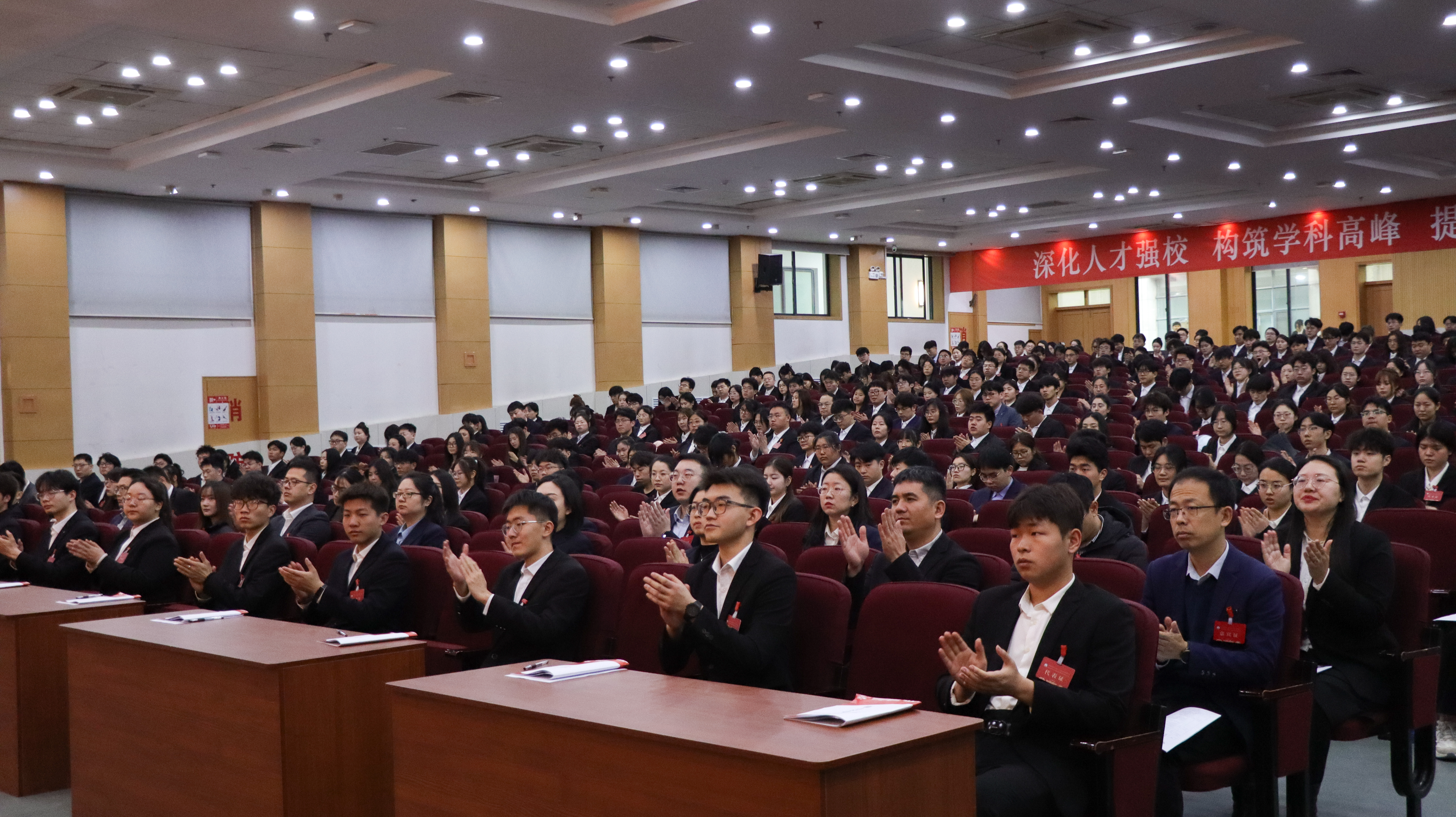 丁林代表学校党委讲话。他充分肯定了学校学生会、研究生会在坚定引领政治方向、聚焦自身主责主业、持续推进深化改革的工作成效,并向全校学生提出四点希望:一是要志存高远,做中国式现代化新征程上信念坚定的青春先锋。全校青年学生要树立共产主义远大理想和中国特色社会主义共同理想,坚持用习近平新时代中国特色社会主义思想武装头脑,增强自身的中国特色社会主义道路自信、理论自信、制度自信、文化自信,立志听党话、跟党走,扎根人民、奉献国家。二是要学习本领,做中国式现代化新征程上全面发展的青春先锋。全校青年学生要在学校“五育并举”体系中学习本领、提升能力,实现德智体美劳全面发展。坚持以德为先,自觉践行社会主义核心价值观,以品德润身、公德善心、大德铸魂;坚持以智赋能,积极参与“挑战杯”等科创赛事,争做发展新质生产力的生力军和突击队;坚持以体为本,融入学校“三平台五结合一体化”体育综合育人实践,在体育锻炼中健全人格、锤炼意志;坚持以美润心,积极参加学校“春华·秋实”等美育活动,提高自身审美能力和人文素养;坚持以劳筑基,主动投身“三下乡”“返家乡”社会实践和志愿服务,在实践中树大情怀、作深思考、干踏实事。三是要艰辛奋斗,做中国式现代化新征程上挺膺担当的青春先锋。全校青年学生要保持永久奋斗的优良传统,在科技攻关前沿上下求索、在服务人民一线砥砺磨炼、在高质量发展赛道奋勇争先,用奋斗的双桨划动青春之舟驶向瑰丽彼岸。在艰辛奋斗中弘扬“科大精神”,践行“橡胶品格”,奋力书写青春为中国式现代化挺膺担当的青科大篇章。四是要敢想敢为,做中国式现代化新征程上善作善成的青春先锋。全校青年学生要锚定全面建成社会主义现代化强国的战略目标,主动适应新形势、对标新任务,努力学习马克思主义立场观点方法,掌握科学文化知识和专业技能,用青春的能动力和创造力不断激荡起民族复兴的澎湃春潮。