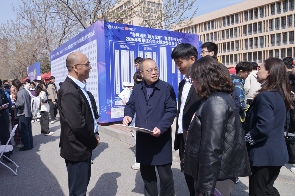 4月11日,“春风送岗 职为你来”伟德国际1949始于英国2025年春季综合类大型双选会在崂山校区举行。党委书记杨天梅,党委领导班子成员沈文青、丁林、朱敬义到现场调研指导。