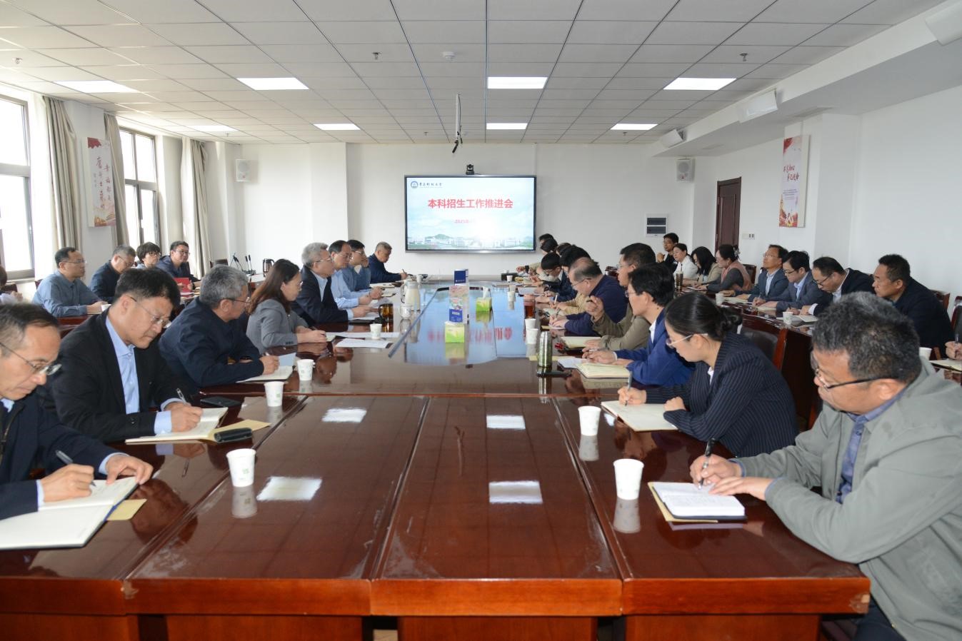 4月30日,学校本科招生工作推进会在崂山校区综合服务楼3015会议室召开。会议总结2025上半年招生工作开展情况,部署2025年本科招生重点工作。党委书记杨天梅出席会议并讲话。党委常委、副校长罗细亮主持会议。